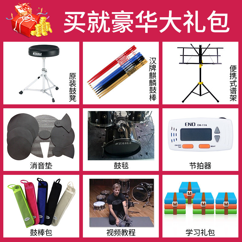 📚 架子鼓TAMA节奏伴侣成人/儿童爵士鼓原声鼓套鼓RL52KH6烤漆款5鼓