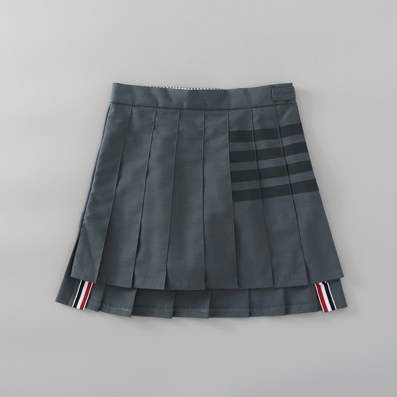 📚 王心凌同款TB高腰百褶裙秋前短后长四条杠条纹短裙显瘦A字半身裙