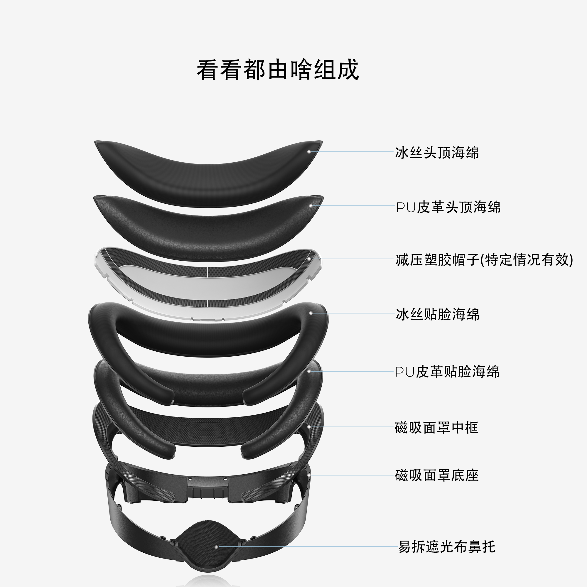 📚 OCULUS Quest 3模块化舒适面罩冰丝加皮革磁吸快速更换增大FOV