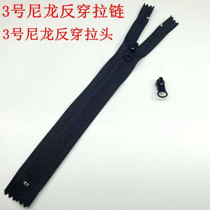 📚 3号尼龙反穿拉链黑色运动裤子门襟口袋裤兜拉链细齿暗反装拉锁头