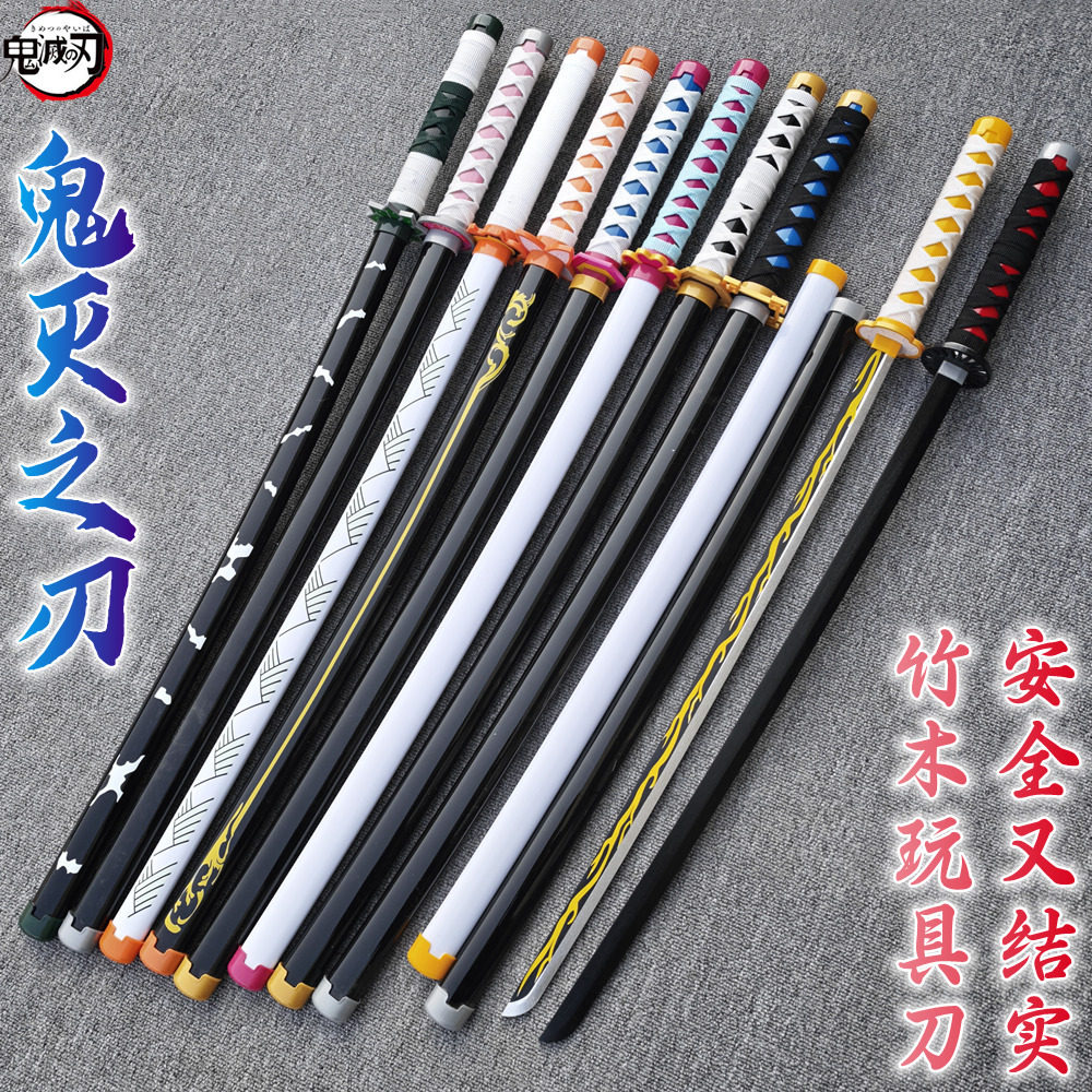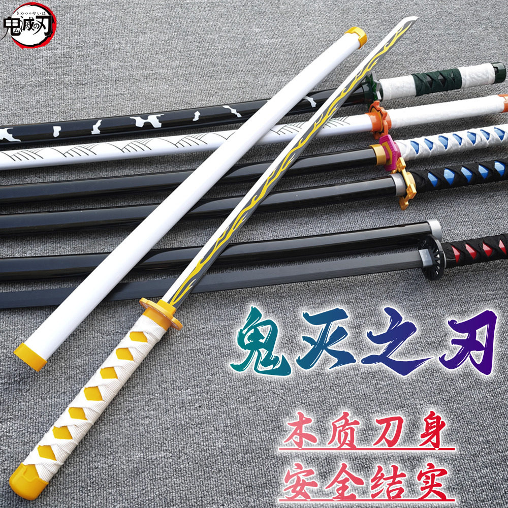 📚 鬼灭之刃日轮刀木刀灶门我妻善逸时透COS拔刀剑道具居合武士刃