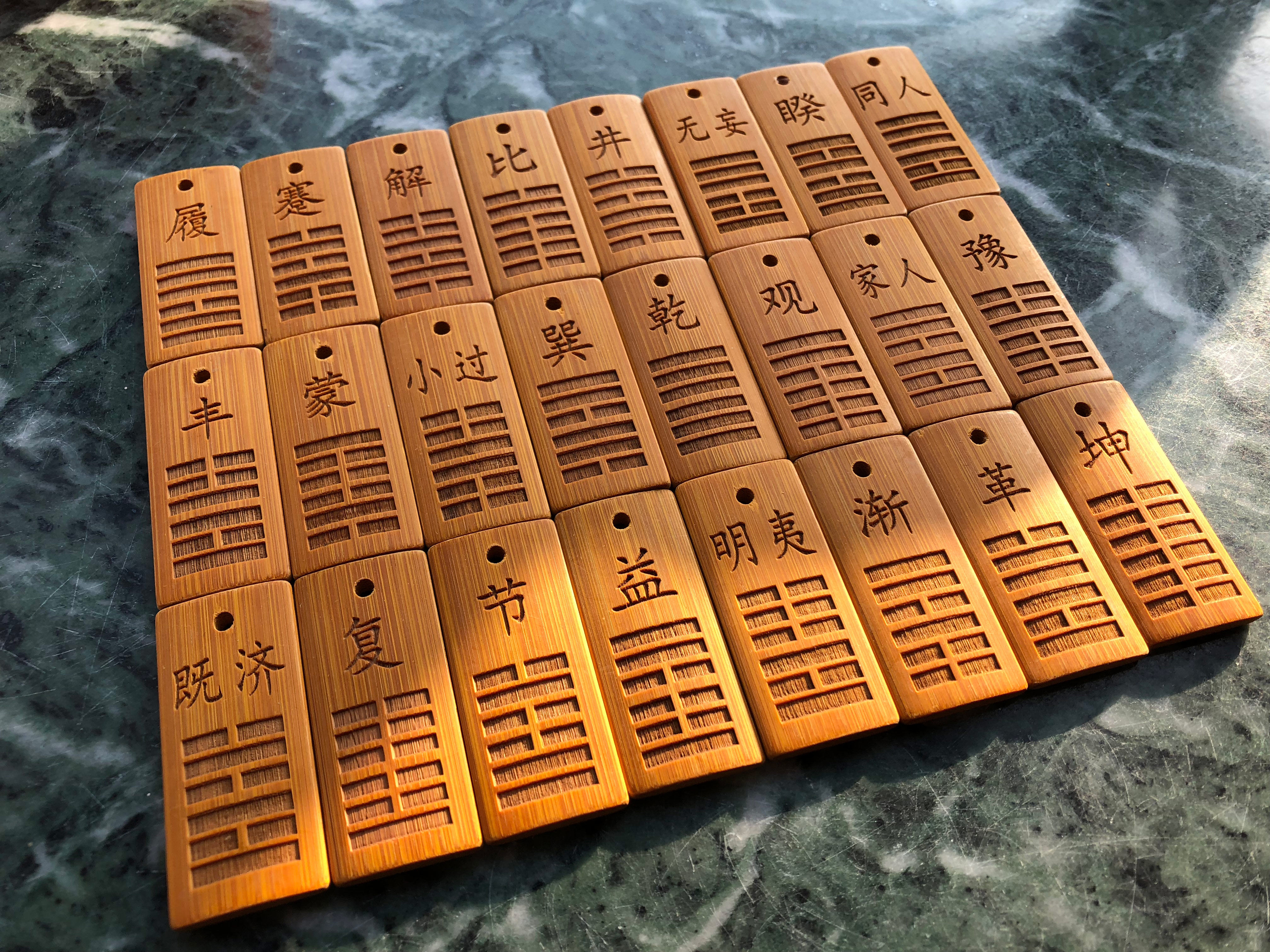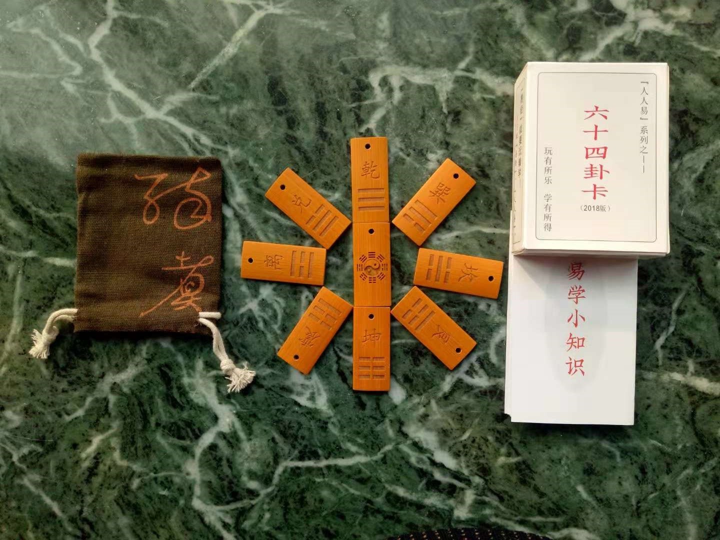📚 周易教具易经64卦牌易经八卦牌六十四卦牌竹刻卦牌实木骰盅铜钱