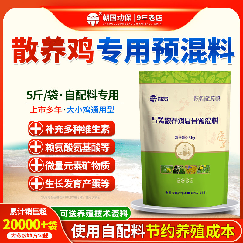 📚 朝国动保土鸡散养鸡山蛋鸡用复合预混料多维氨基酸微量元素 5斤装