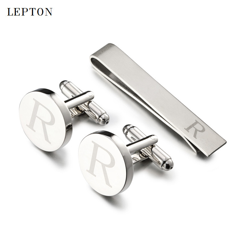 📚 法式袖扣男士R字母袖扣领夹套装A-Z英文字母衬衫cufflinks礼盒装