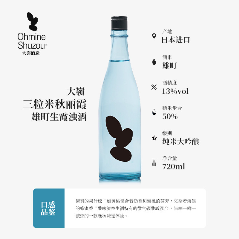 📚 大岭三3粒米出羽灿灿美人鱼生酒限定ohmine纯米大吟酿清酒限定