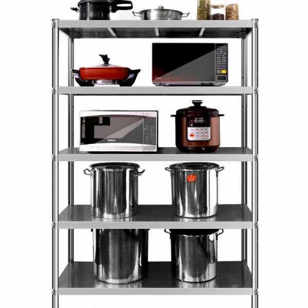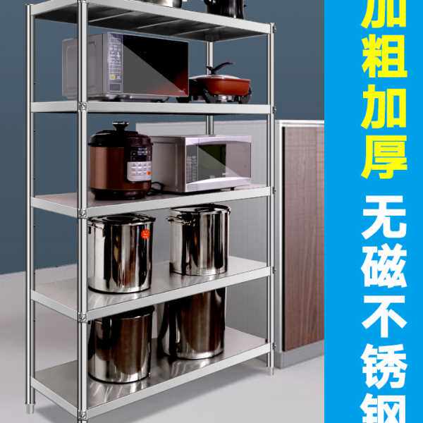📚 304不锈钢厨房置物架五层落地多层仓库货架家用微波炉储物架5层
