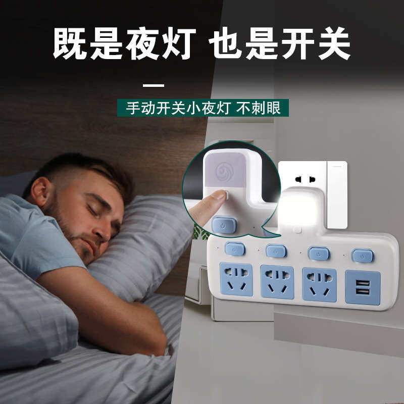 📚 无线插座转换器带usb充电一转多2插位多孔多功能插排带开关带夜灯