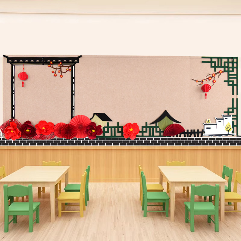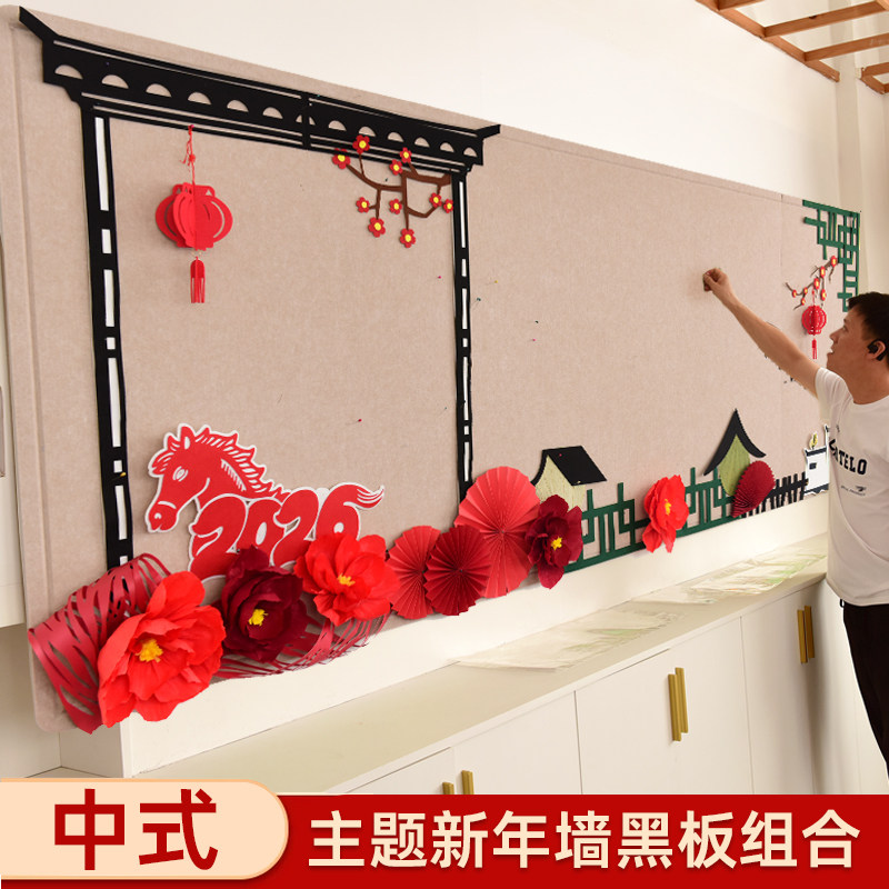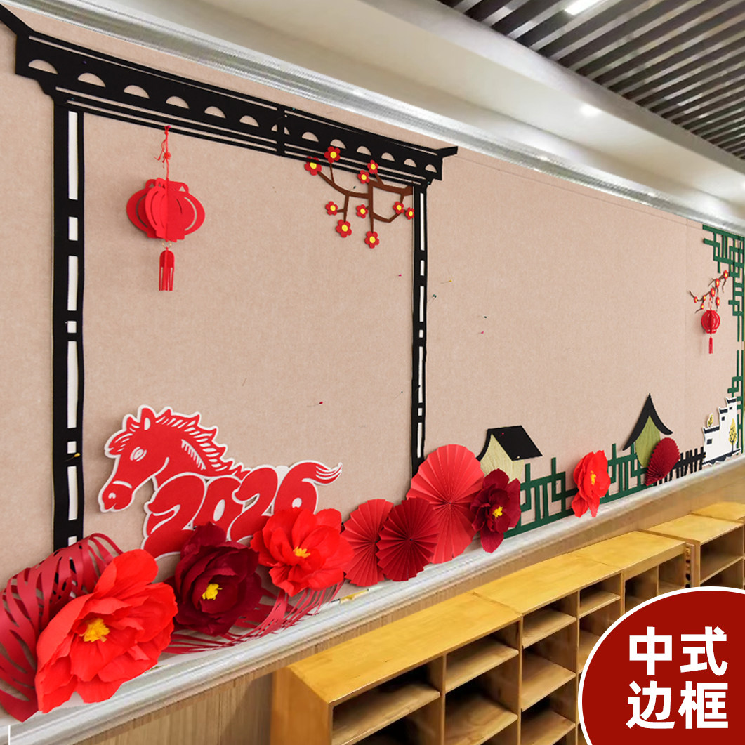 📚 2026马年中式主题黑板报边框组合幼儿园小学墙面墙贴环创装饰材料