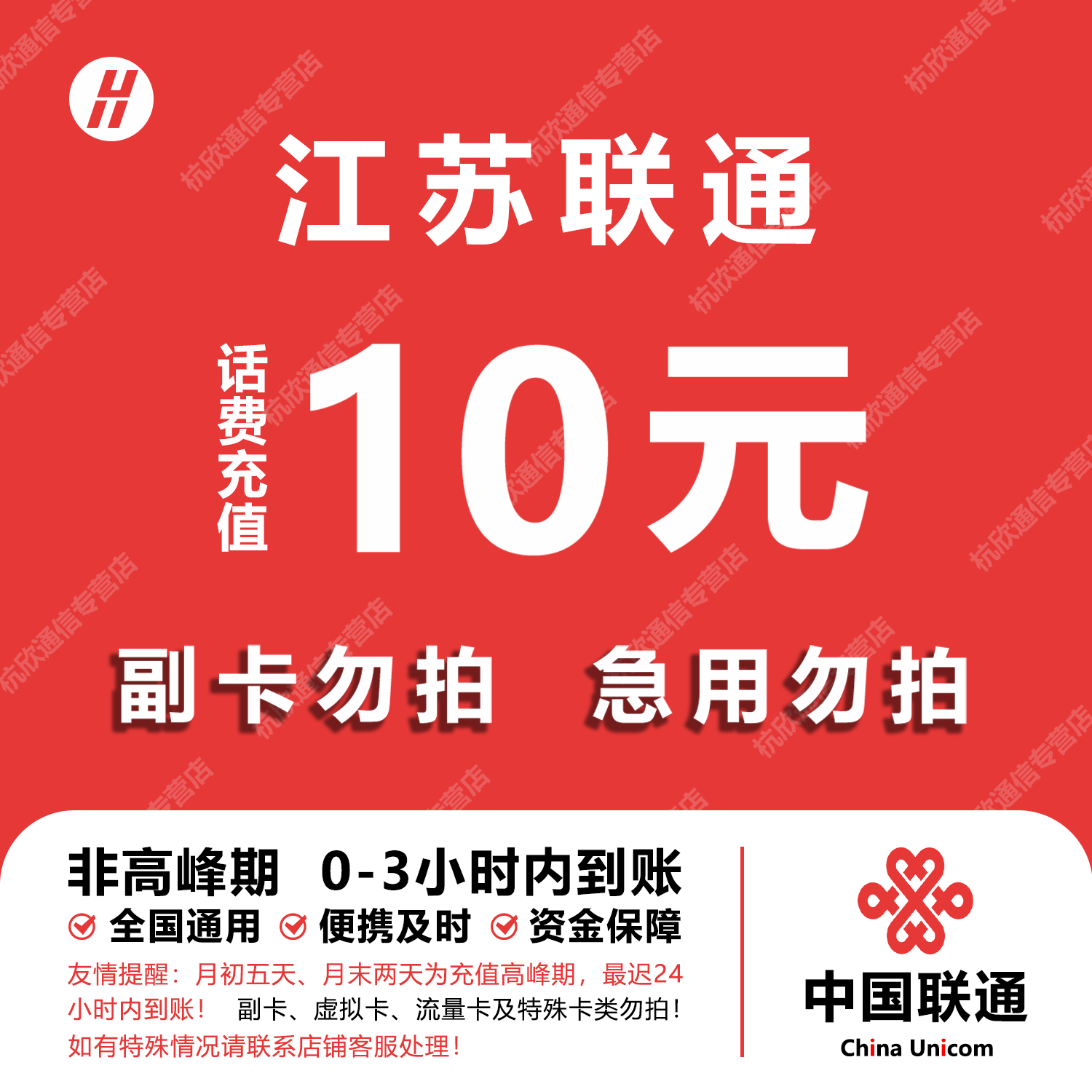 📚 江苏联通话费充值 10元 快充直充 24小时自动充值快速到账