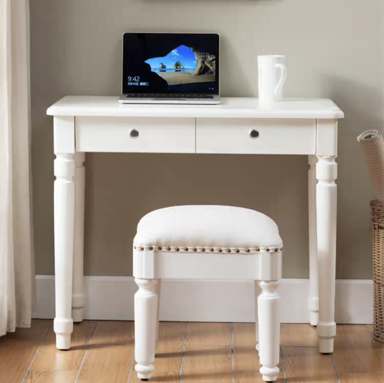 📚 实木书桌写字台电脑桌飘窗写字桌白色桌子欧式简约现代卧室学习桌