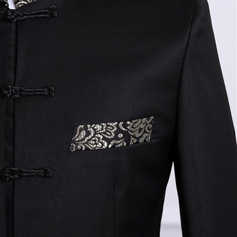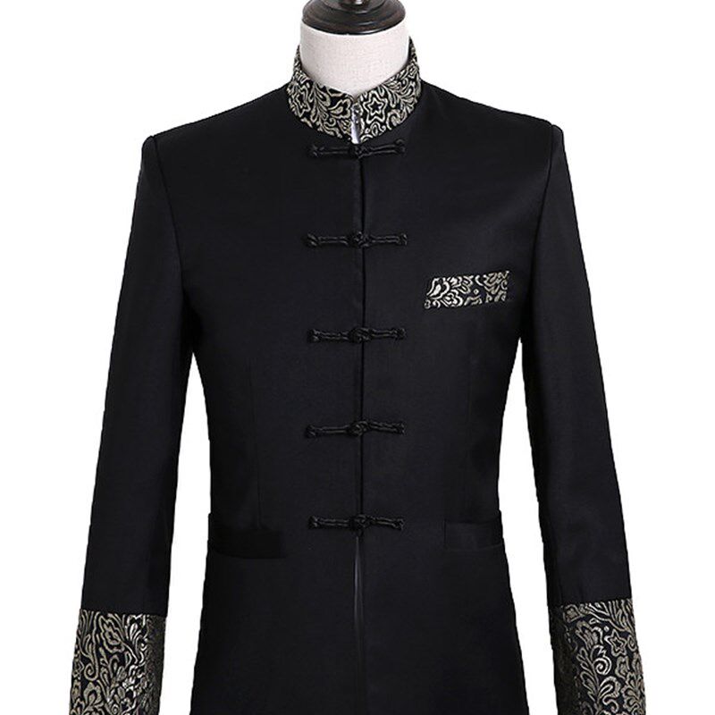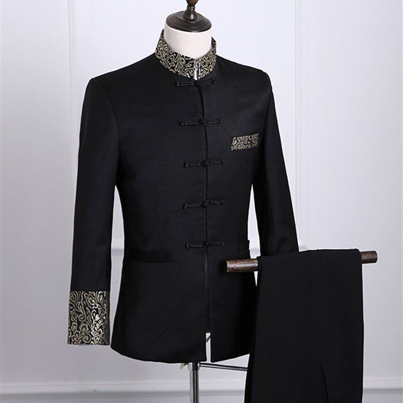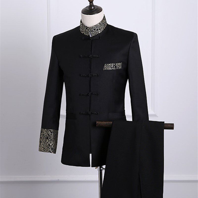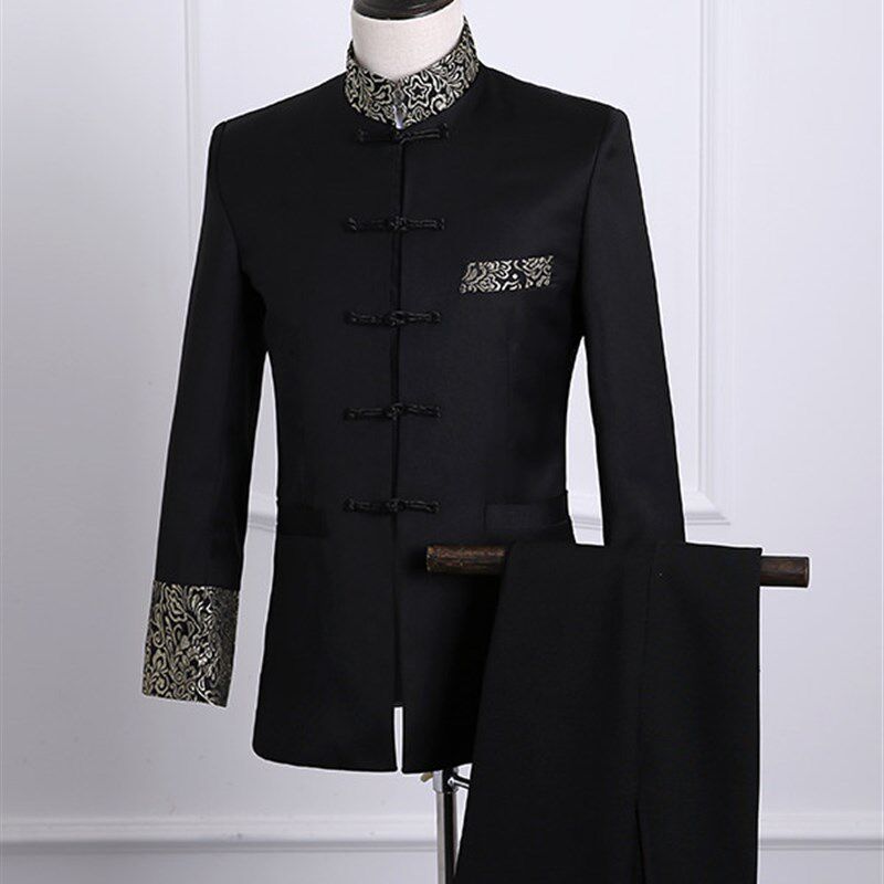 📚 演出服男青年中山装春秋修身司仪主持人套装中国风立领唐装礼服潮
