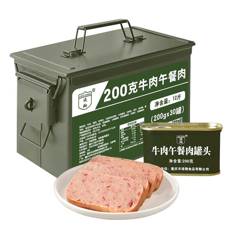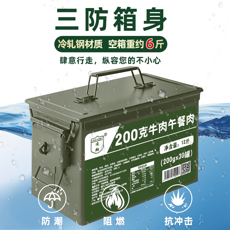 📚 凌翔三防箱牛肉午餐肉罐头火锅配菜家庭速食便携9罐装牛肉午餐肉