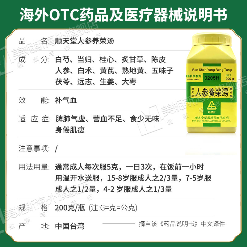 📚 台湾顺天堂人参养荣汤补气血中成药脾肺气虚营血不足食少无味汉方