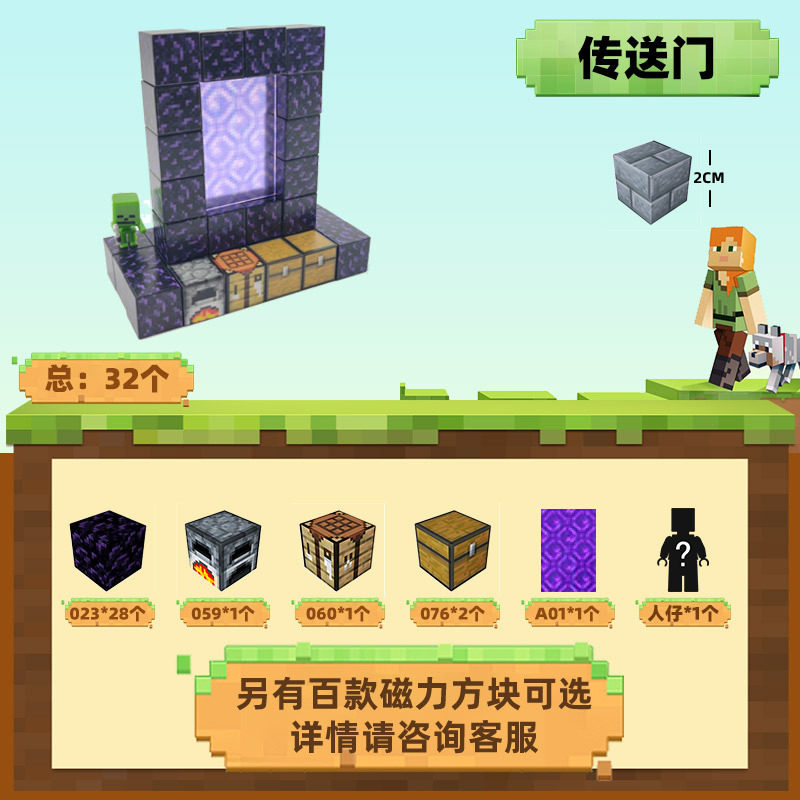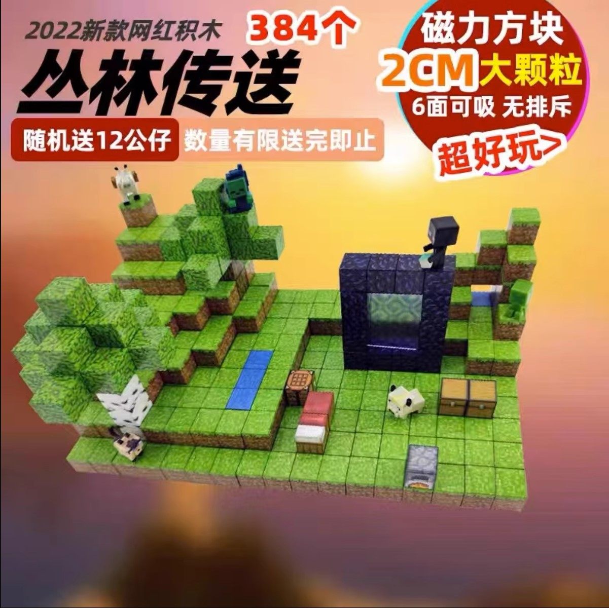 📚 我的世界磁性磁力方块儿童益智高难拼装丛林小楼2023磁铁积木玩具