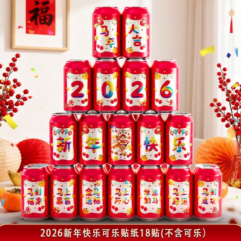 88¥ CZ007 3GXhUModEPX¥ https://m.tb.cn/h.7CanXNO 新年可乐罐贴纸2026马年新款春节祝福易拉罐装饰企业年会喜庆布置 --------------------- 【原售价】18.8元 【现售价】18.8元。