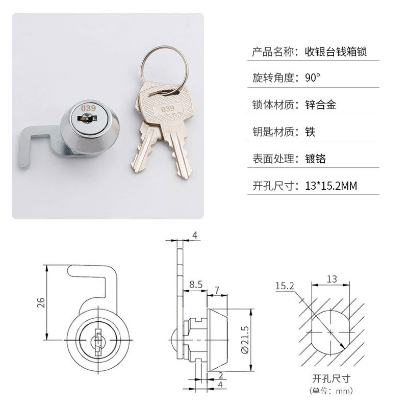 📚 收银台钱箱锁通用抽屉锁商场超市转舌锁钩锁铁皮钱柜锁钢柜锁小锁