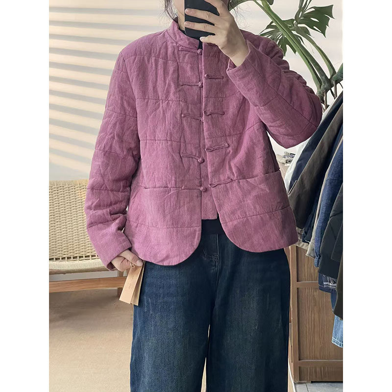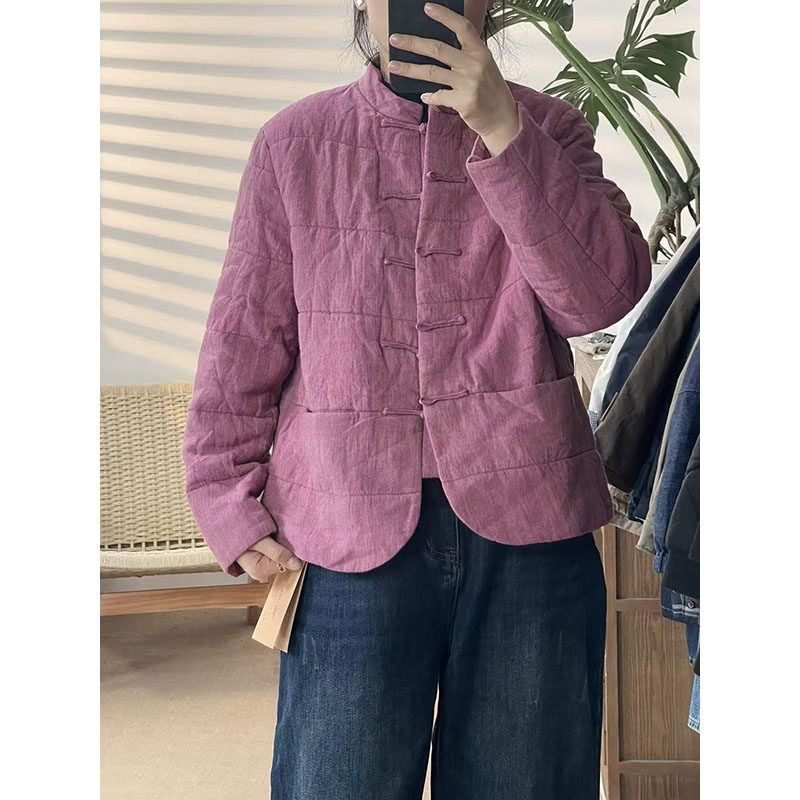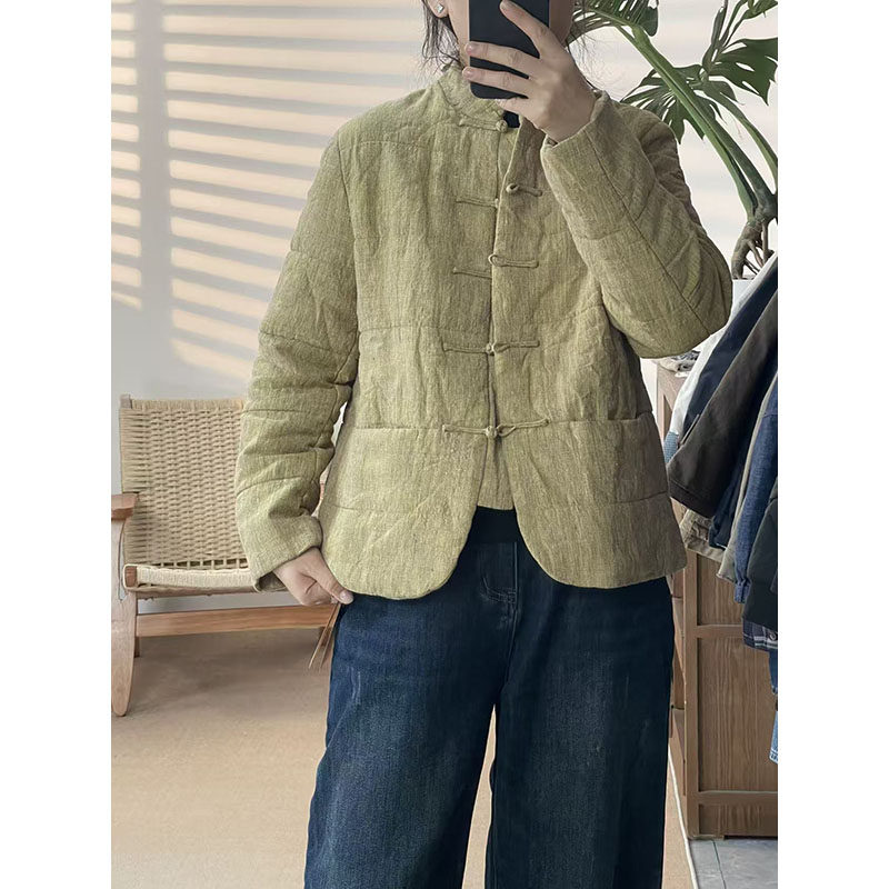 📚 2025冬新款立领盘扣汉麻棉服外套女宽松显瘦百搭休闲厚款上衣419