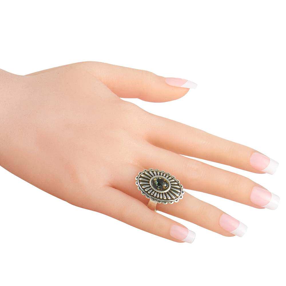 📚 自营 King Baby 大号 Starburst Concho 银和斑点绿松石戒指 - 多