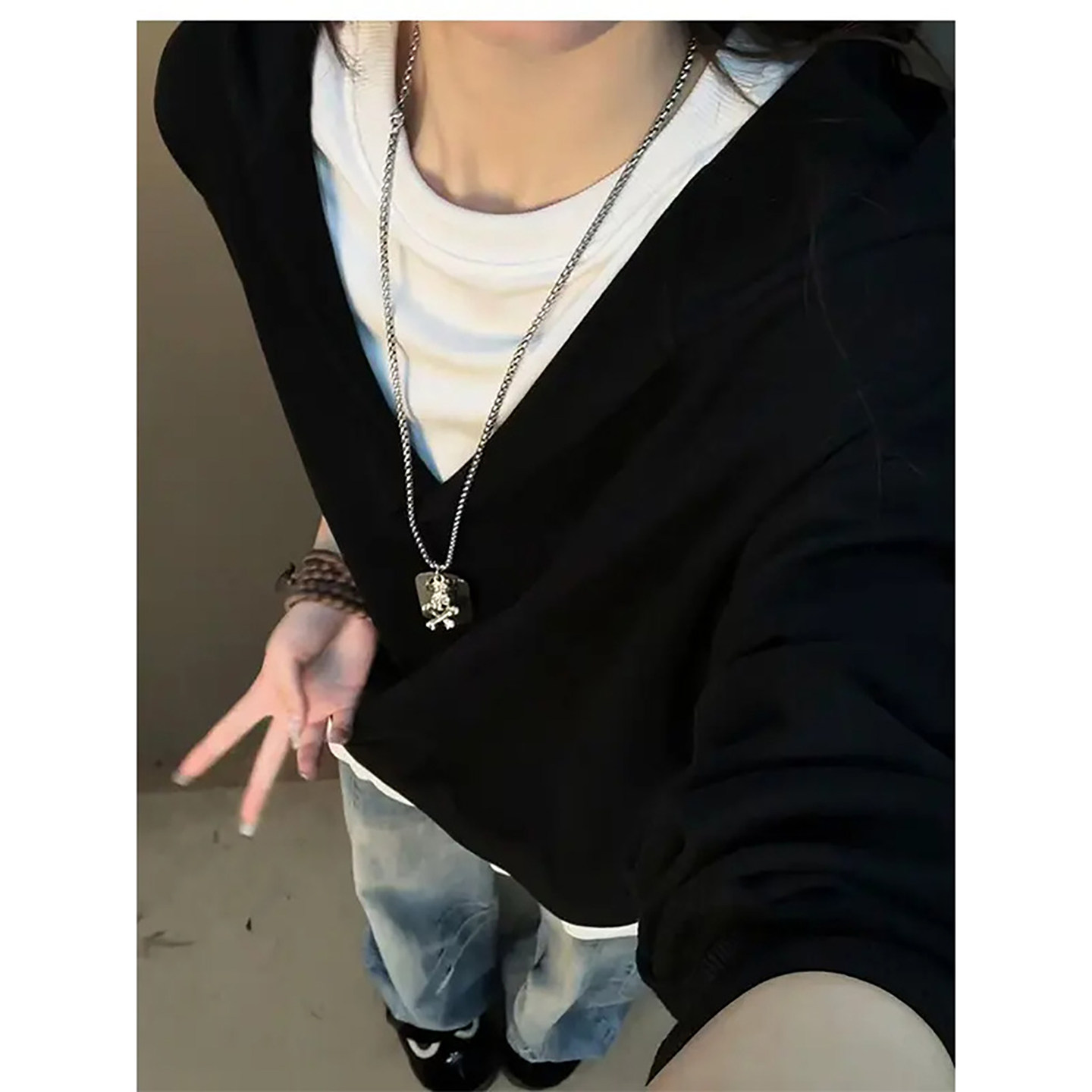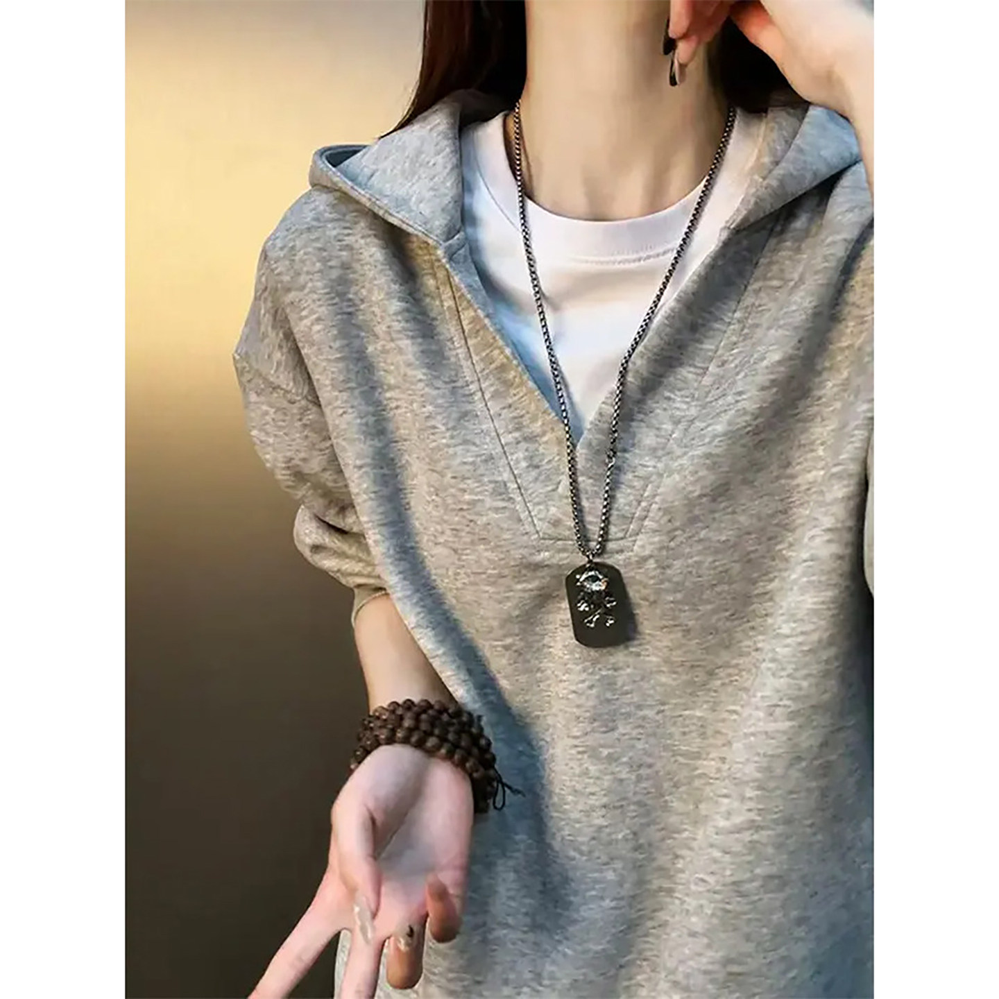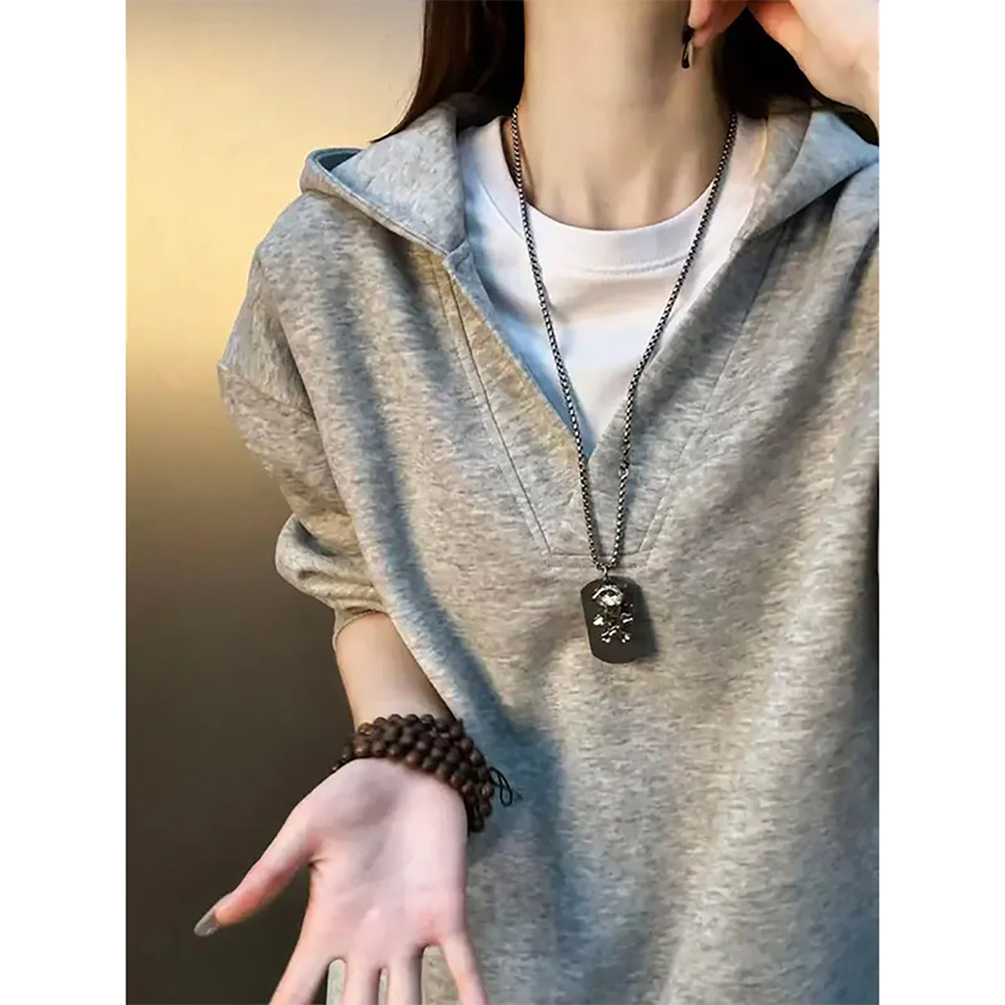 📚 浅灰色假两件拼接V领卫衣男款春季小众设计感连帽衫美式休闲外套