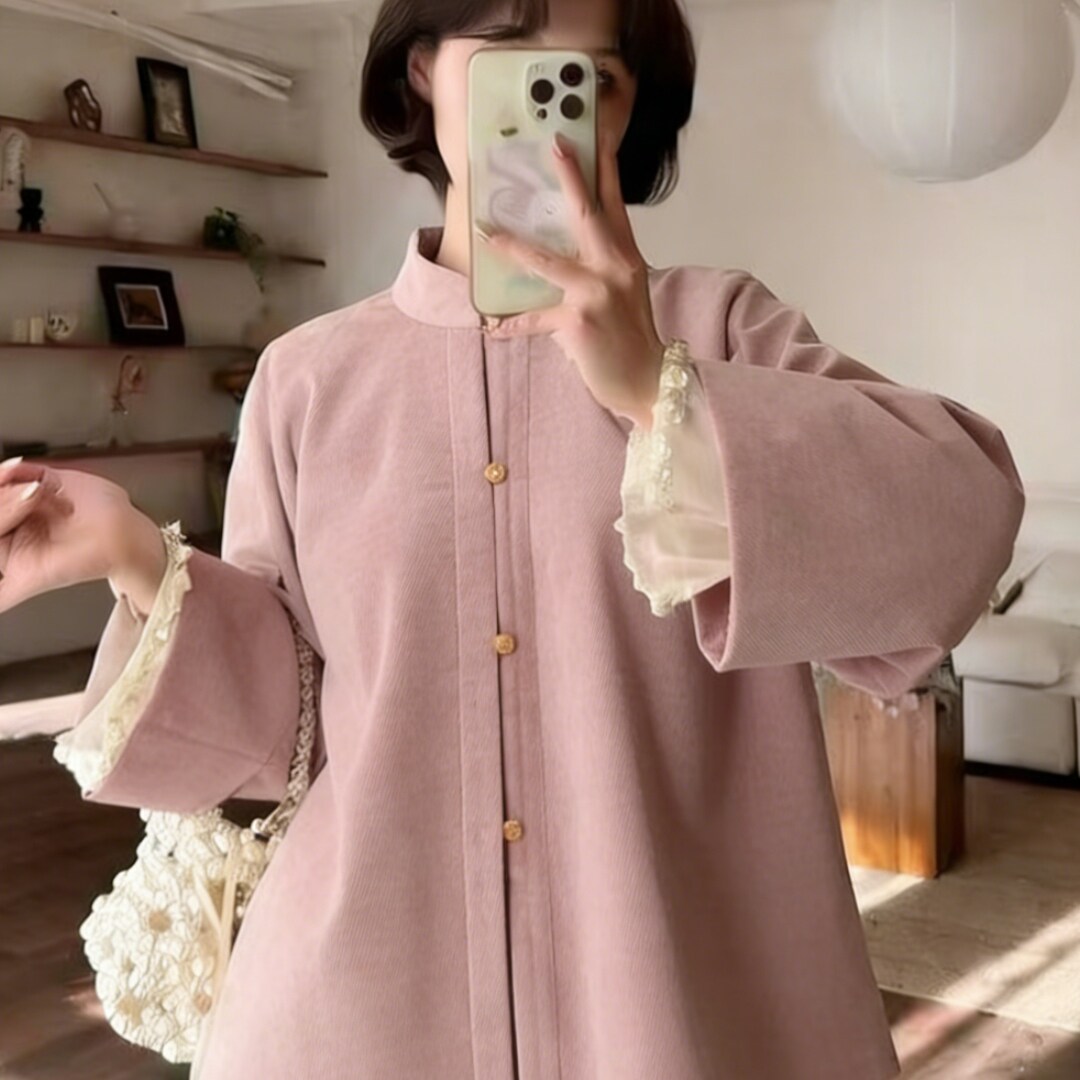 📚 2025冬季新款国风复古日常通勤明制汉服清冷感粉色宽松胖mm上衣女