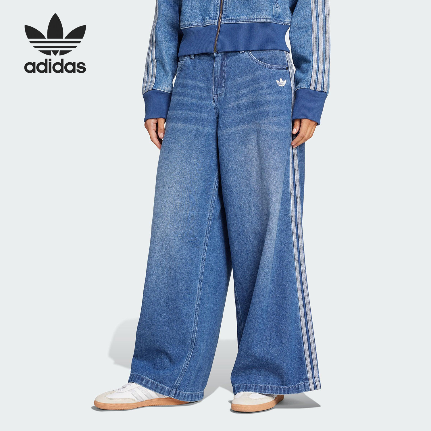📚 Adidas/阿迪达斯官方正品三叶草女士休闲牛仔宽松运动裤JV7454