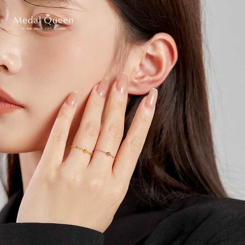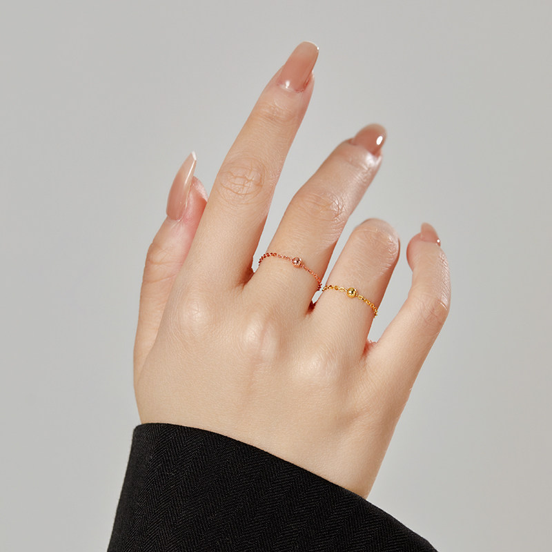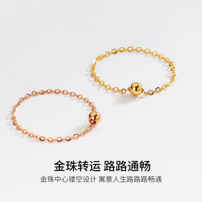 📚 18K玫瑰金转运珠黄金戒指圆珠链条戒女小众设计 食指超细彩金素圈