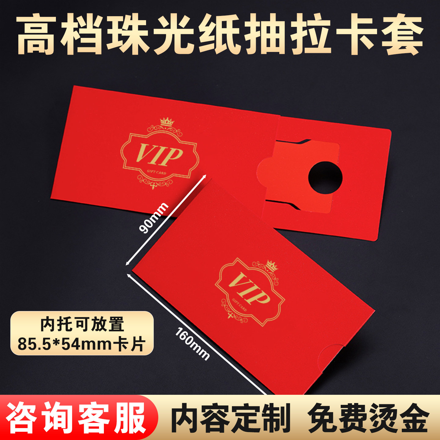 📚 vip会员卡套定制储值卡礼品卡提货卡贵宾卡购物卡蟹卡珠光纸信封烫金带logo现货抽拉式纸质封套包装设计制作