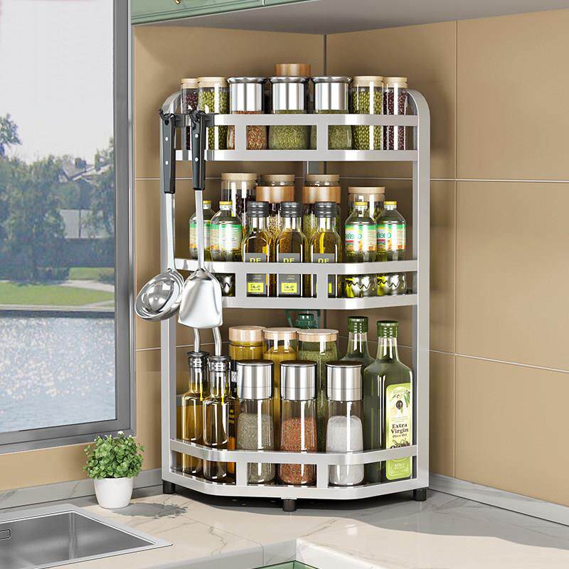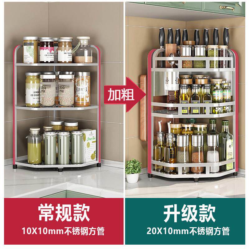 📚 304不锈钢厨房调味品置物架转角调味罐架多功能三角架调味料收纳