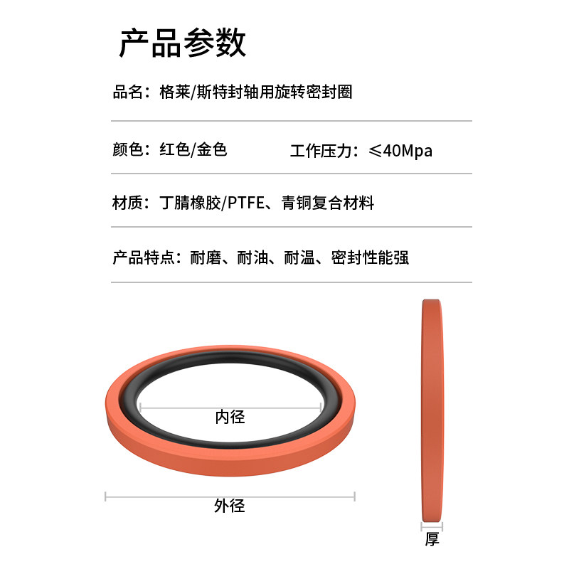 📚 液压油缸往复STD格莱圈孔轴双向用活塞杆组合密封圈耐磨环厚高3.2