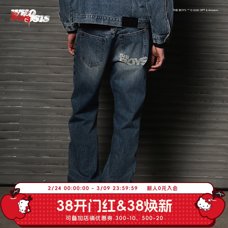📚 【黑袍纠察队官方联名】WHOOSIS 烧花牛仔裤长裤美式休闲宽松男女