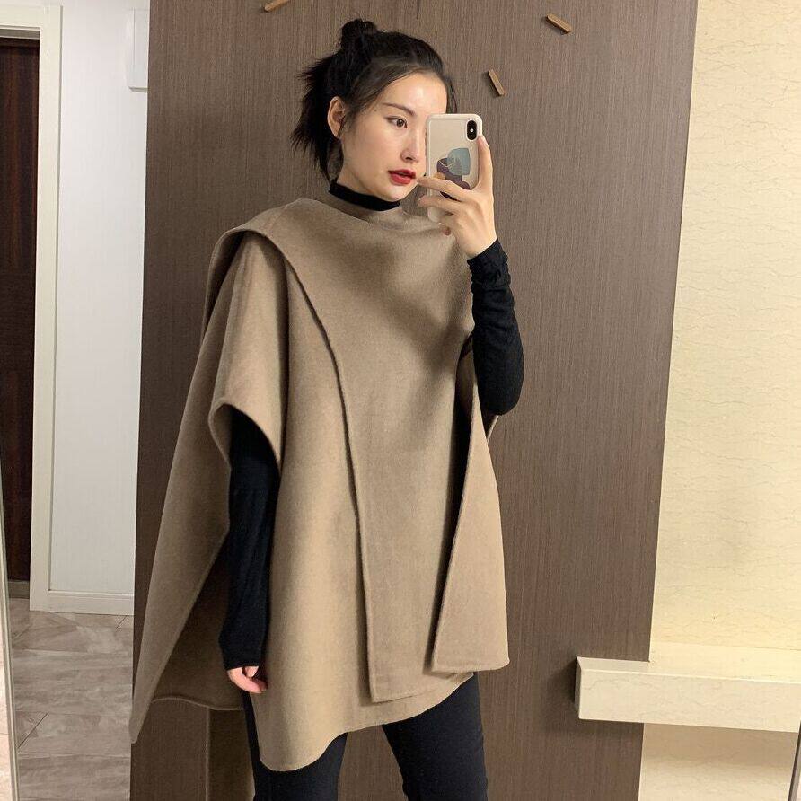 📚 Xzichic100羊毛斗篷披肩双面毛呢大衣外套女秋冬新品高级显贵上衣