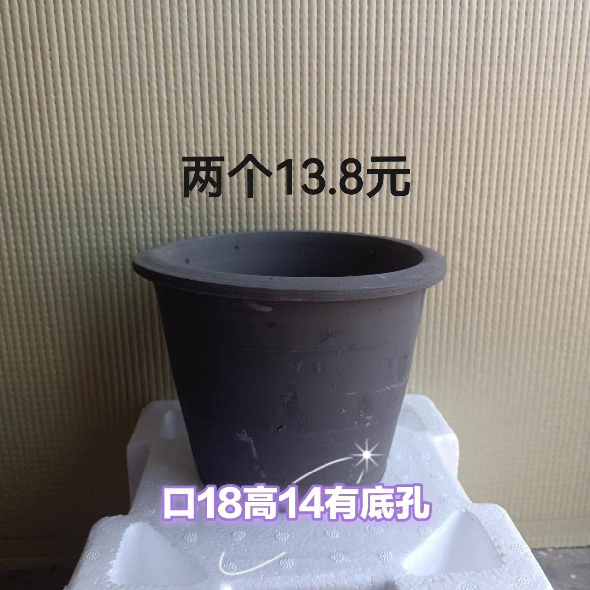📚 泥瓦盆透气耐用陶土素烧黑陶红陶陶瓷多肉小花盆口18高14有孔