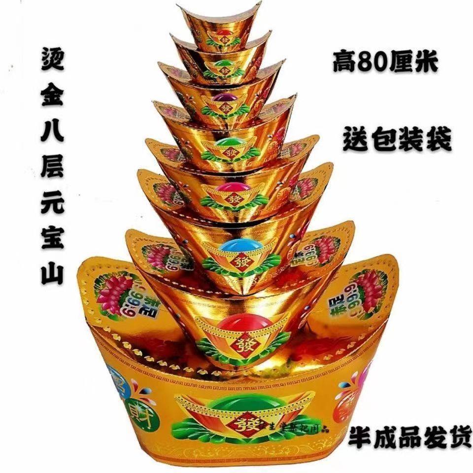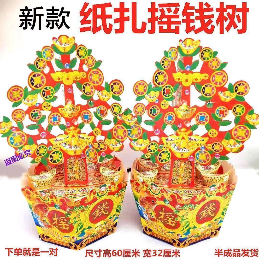 📚 烫金摇钱树金山银山招财纸房子庙金库银库半成品老人周年用全套