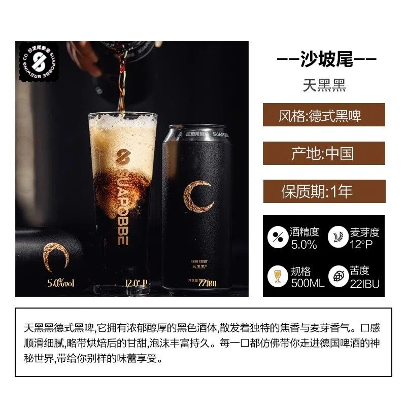 📚 新款沙坡尾啤酒天黑黑德式黑啤太阳神的眼泪拉格杏古斯罐装500ml