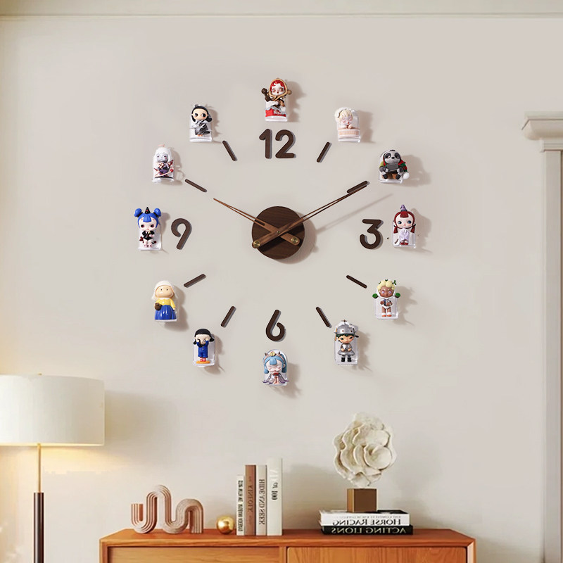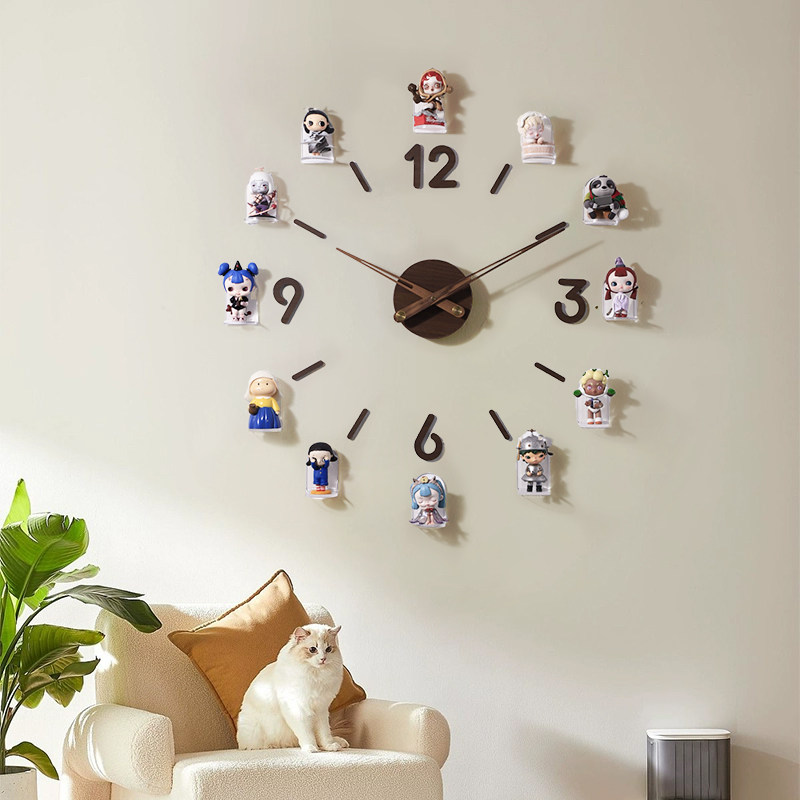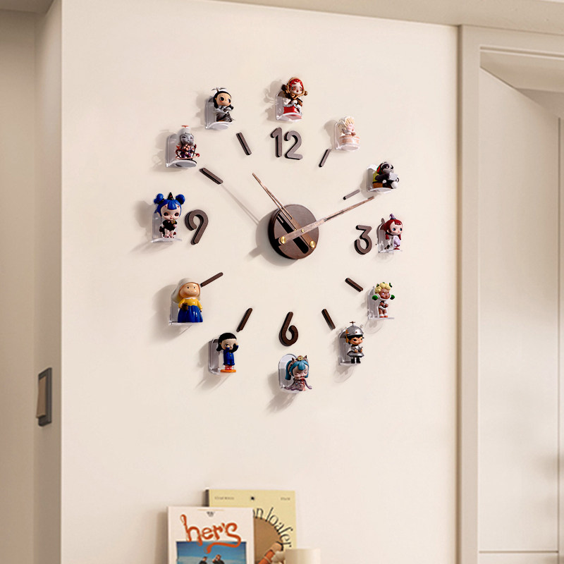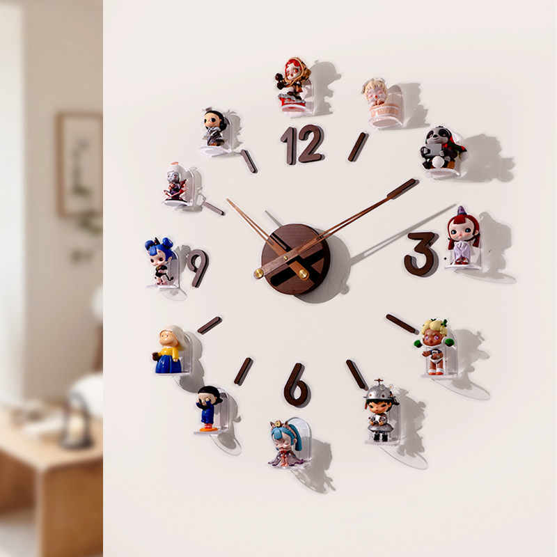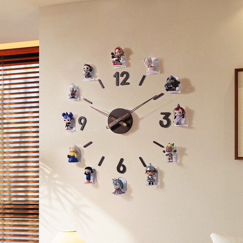 📚 盲盒收纳展示架萌粒手办挂钟客厅静音钟表创意置物架免打孔陈列架