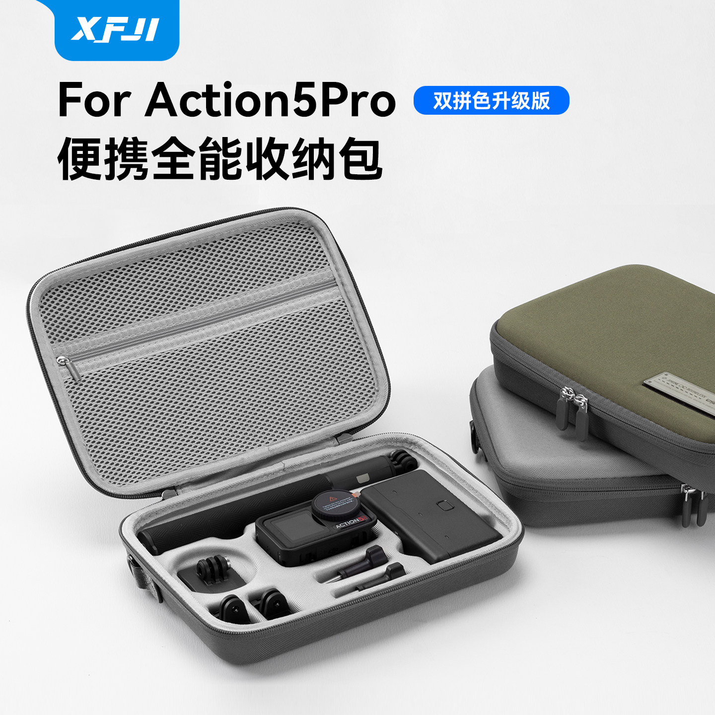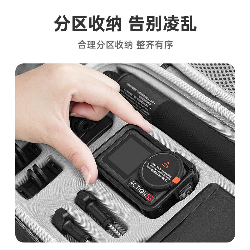 📚 XFJI适用DJI大疆action5pro收纳包便携osmo灵眸Action4/3运动相机背包拼色全能畅拍套装硬壳保护配件盒防摔箱