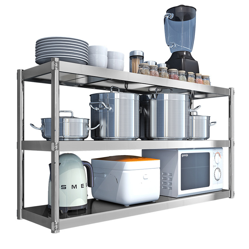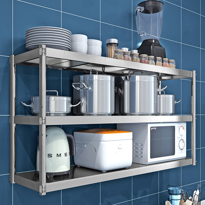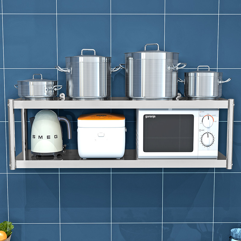 📚 厨房两层挂墙不锈钢吊架收纳上墙架壁挂置物架饭店微波炉调料架3