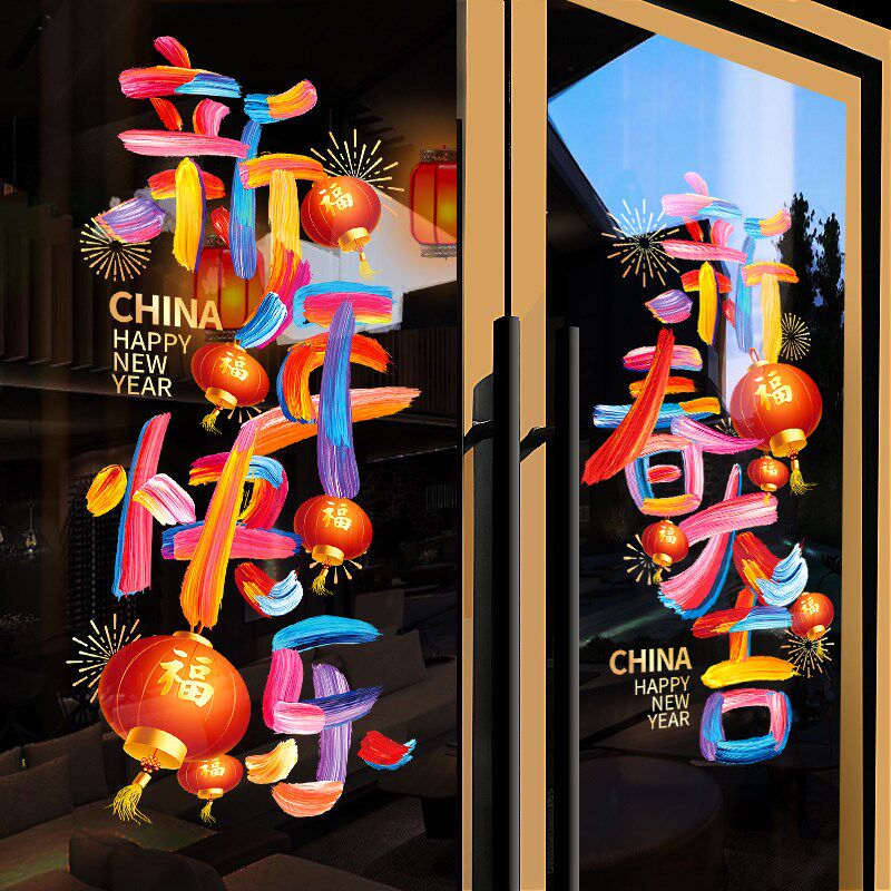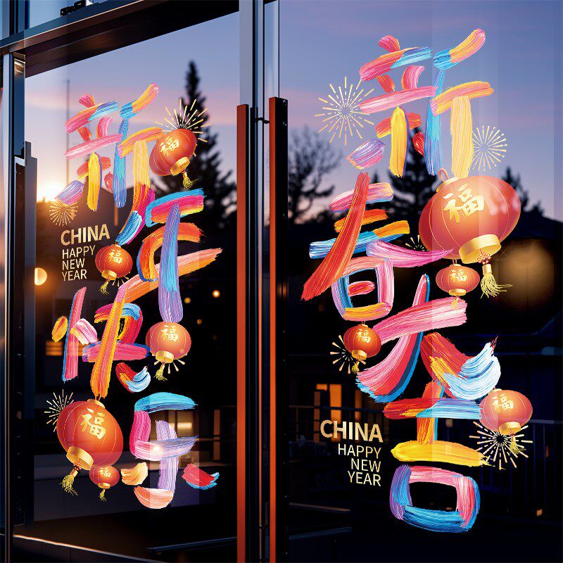 📚 2025新年装饰玻璃门窗花贴画静电贴纸场景布置蛇年春节橱窗户对联