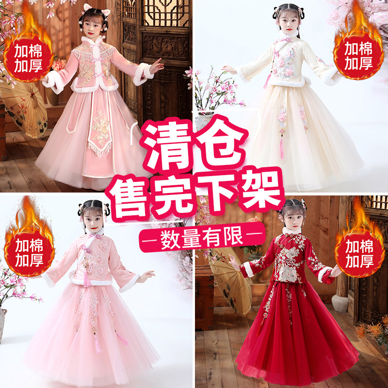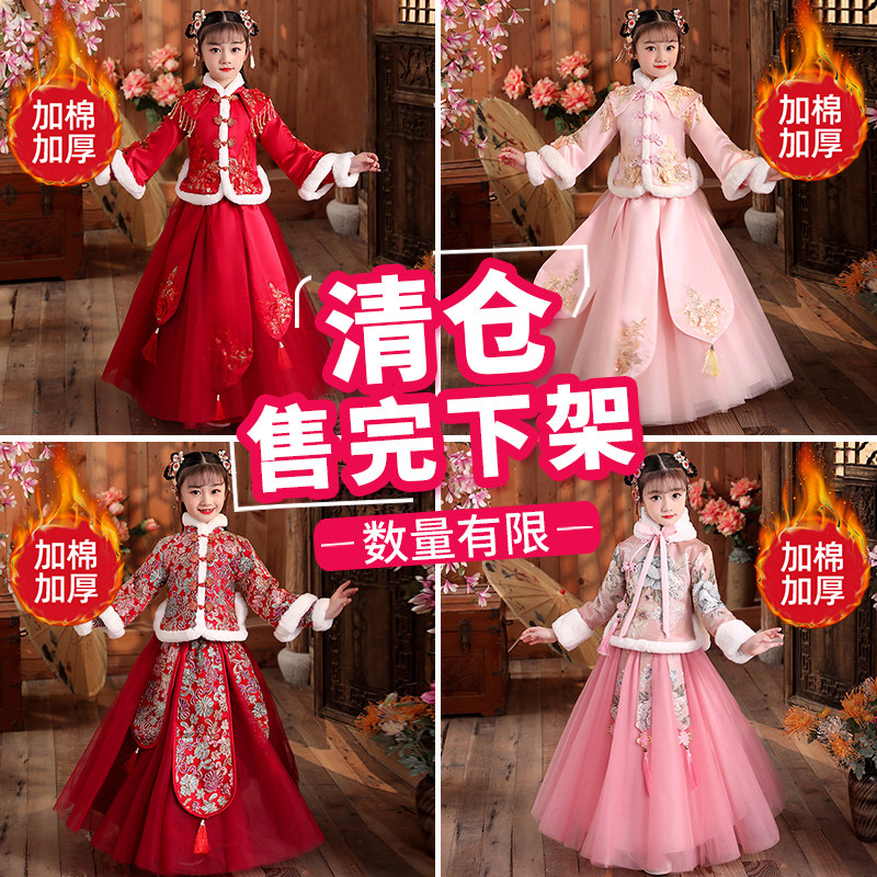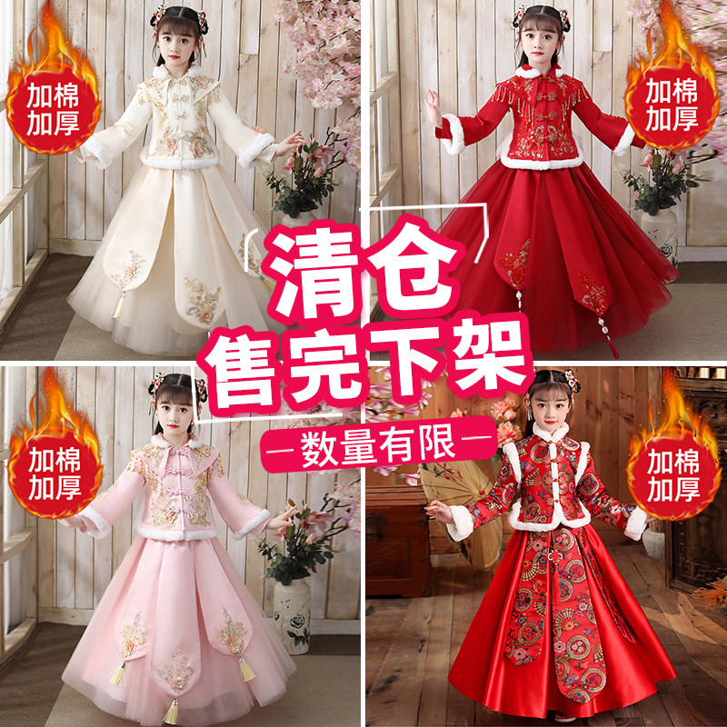 📚 拜年服女童冬装儿童汉服冬季中国风加厚套装女宝宝新年装过年衣服