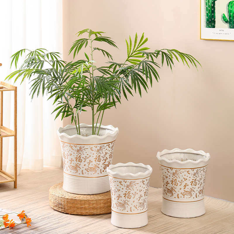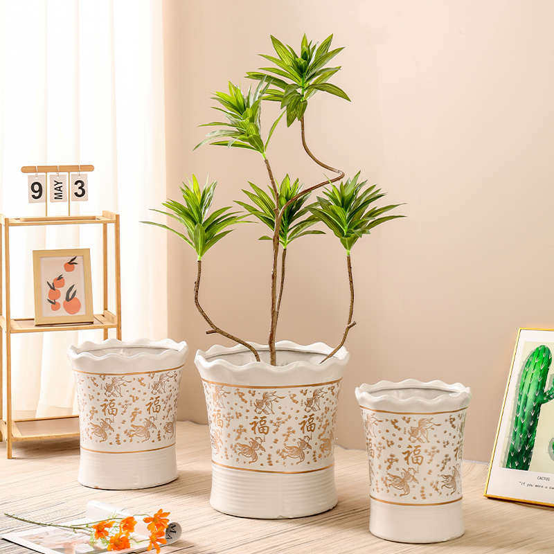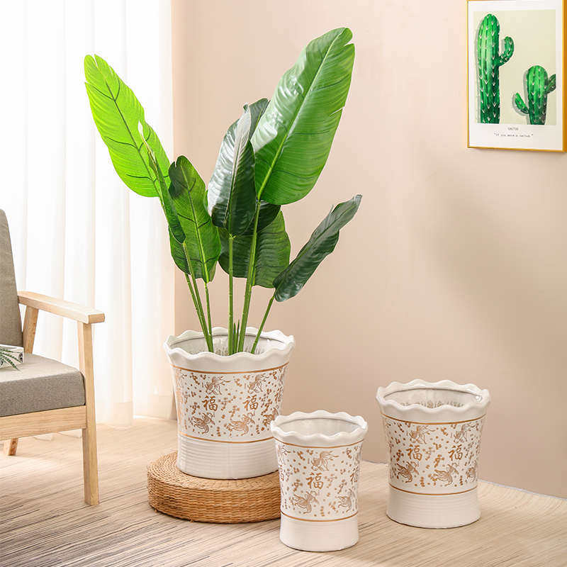 📚 中国风特大号陶瓷花盆家用客厅落地发财树幸福树金钱树专用种树盆