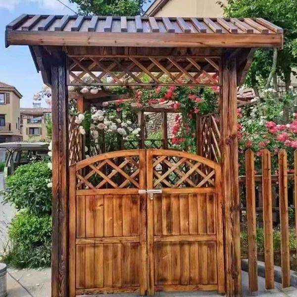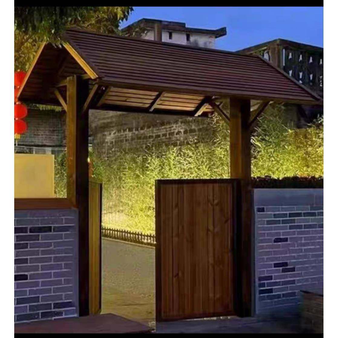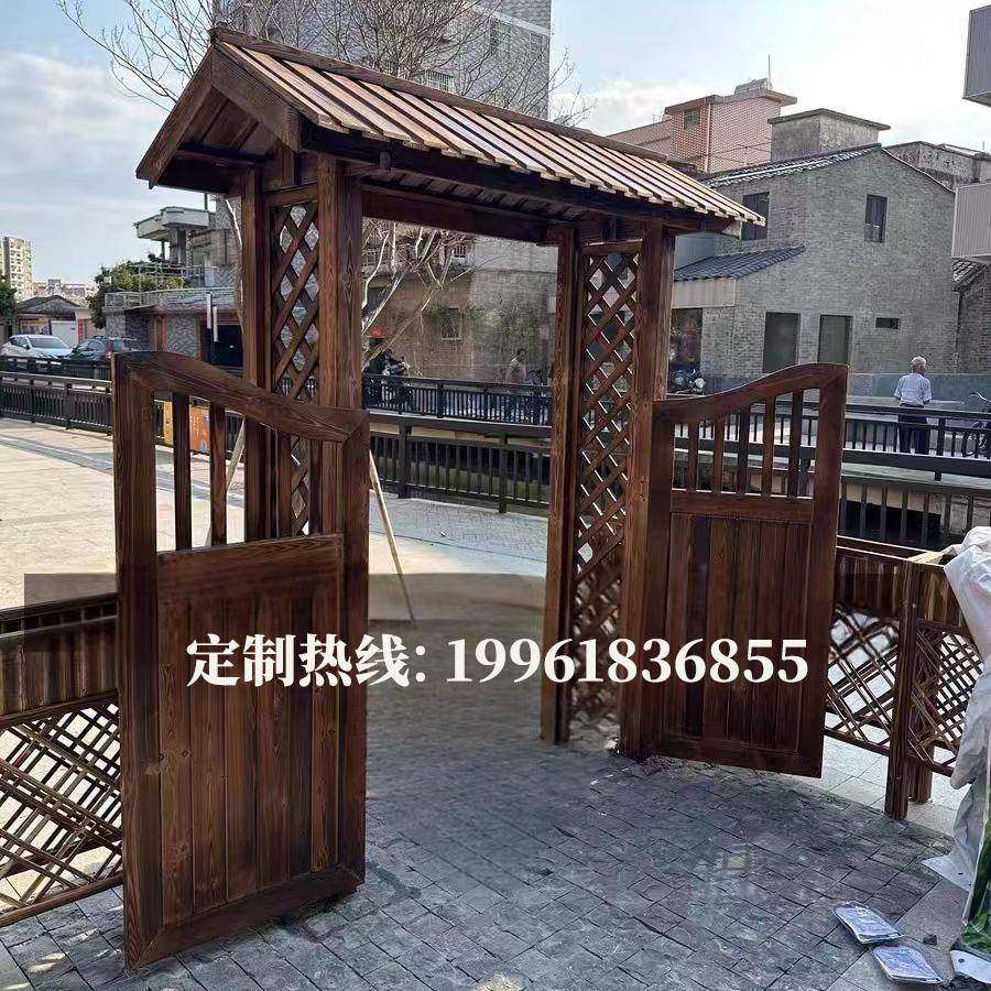 📚 防腐木门楼户外木制中式庭院门楼定制花园入户门乡村小院茅草门头