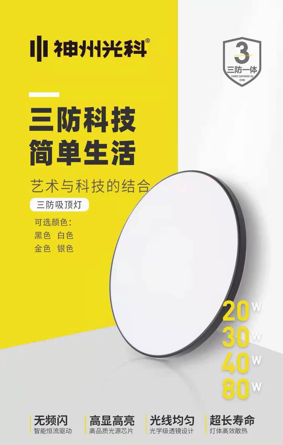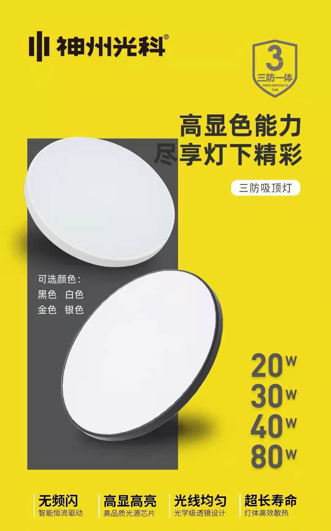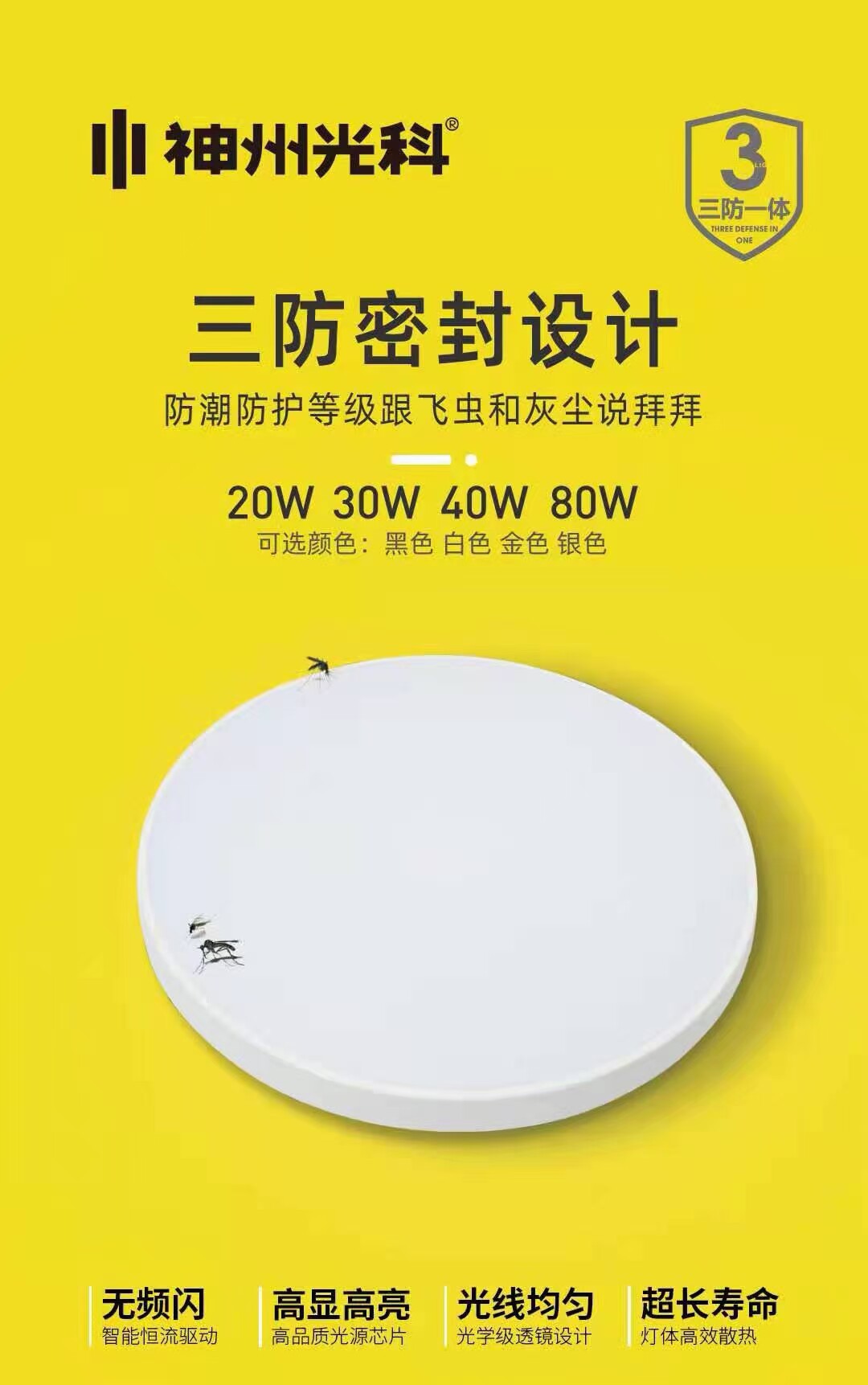 📚 神州光科吸顶灯 LED防尘防潮防蚊虫三防吸顶灯圆形薄款卧厨卫灯