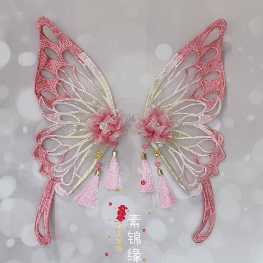 📚 汉服大扑棱蛾子发饰对夹刺绣蝴蝶发夹古风网纱装只此青绿拍照头饰