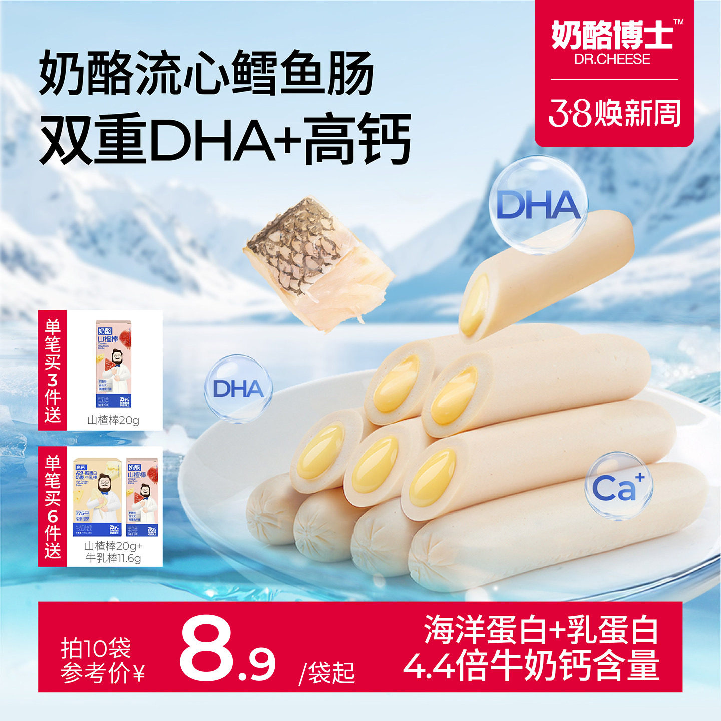 📚 奶酪博士流心鳕鱼肠儿童零食无添加味精送一岁以上宝宝婴幼儿食谱