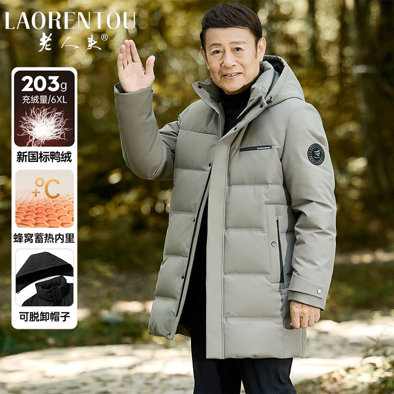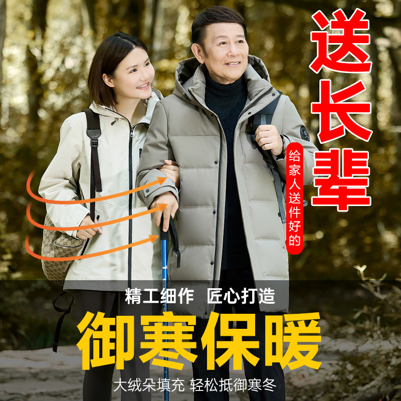 📚 老人头羽绒服中长款极寒加厚高充绒爸爸冬季新款2024保暖抗寒外套