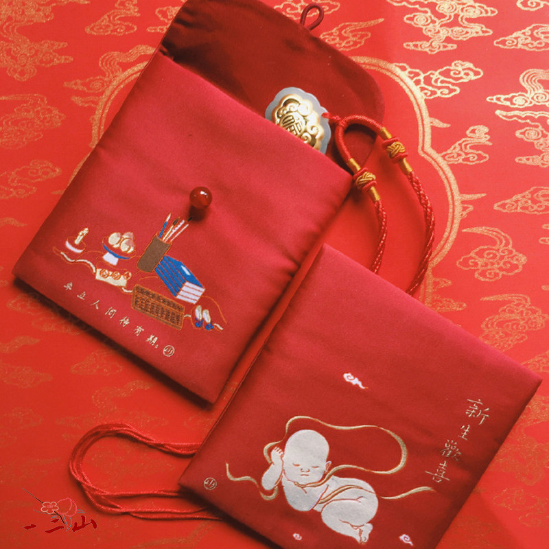 📚 一二山原创 红包袋利是封礼金包布艺丝绣创意中国风新生婴儿满月