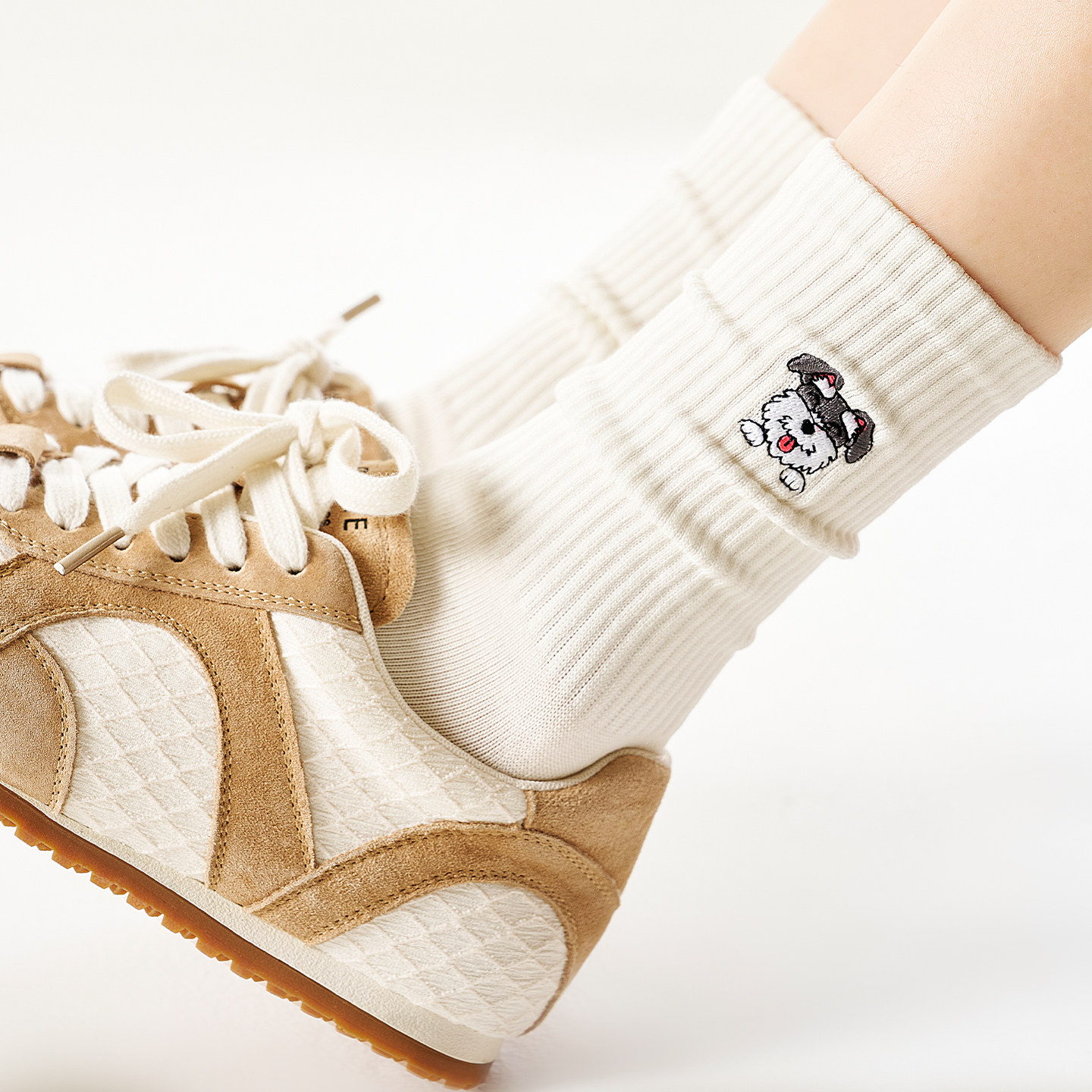 📚 PRIMEET/派米白色袜子男女春秋中筒袜刺绣新款运动可爱网球长袜棉
