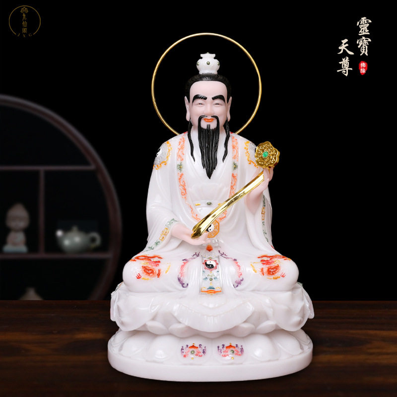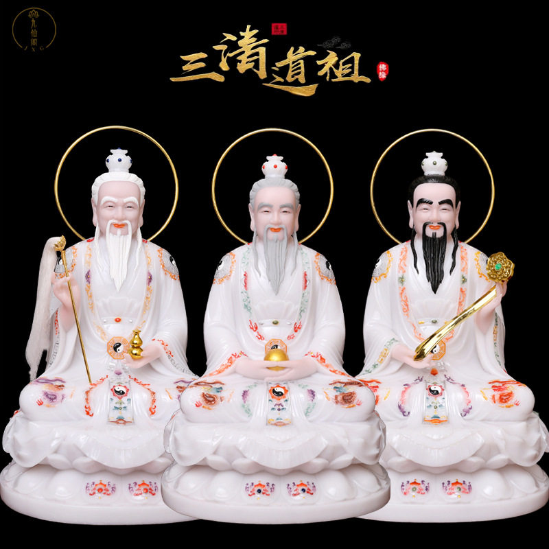 📚 三清道祖神像供奉汉白玉摆件祖师爷道家太上老君摆件家用道德天尊