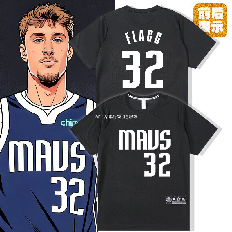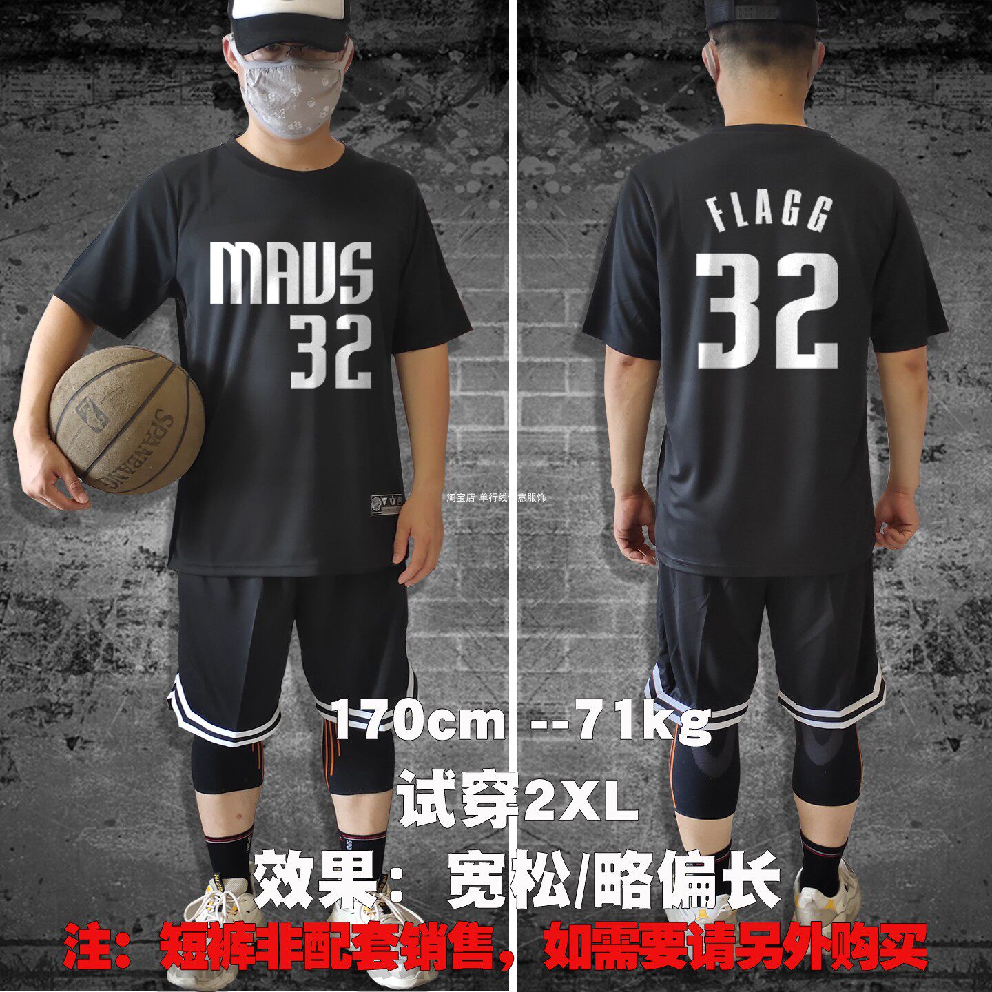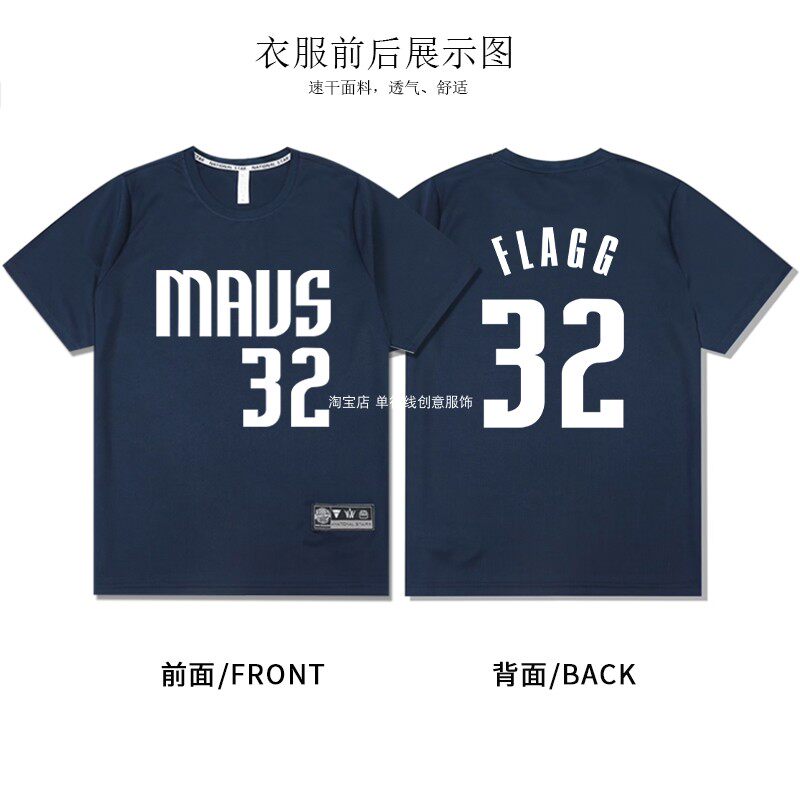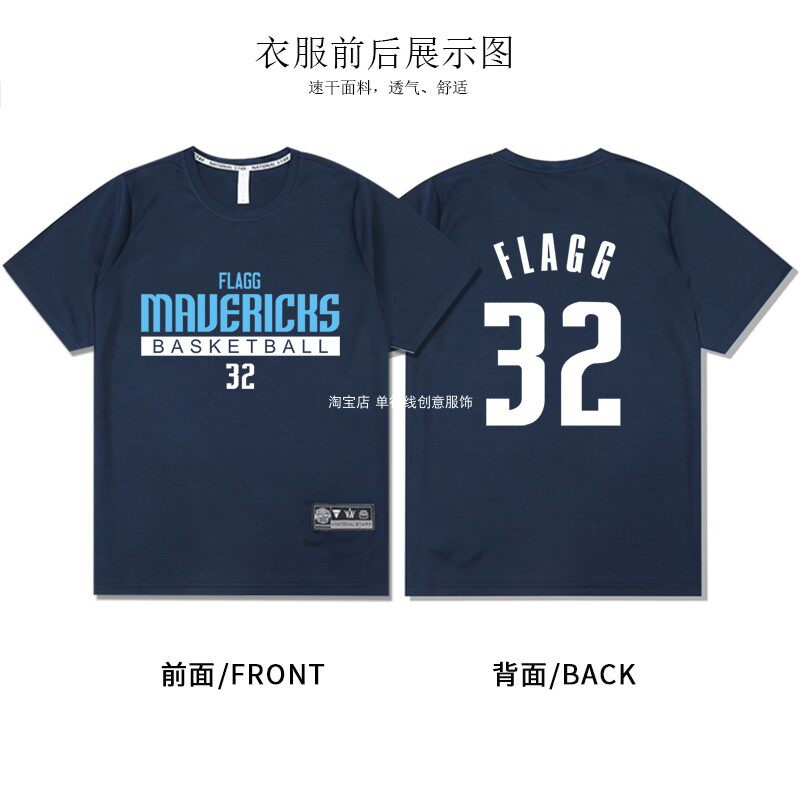 📚 速干美式宽松独行侠32号弗拉格篮球衣短袖投篮训练服运动健身T恤