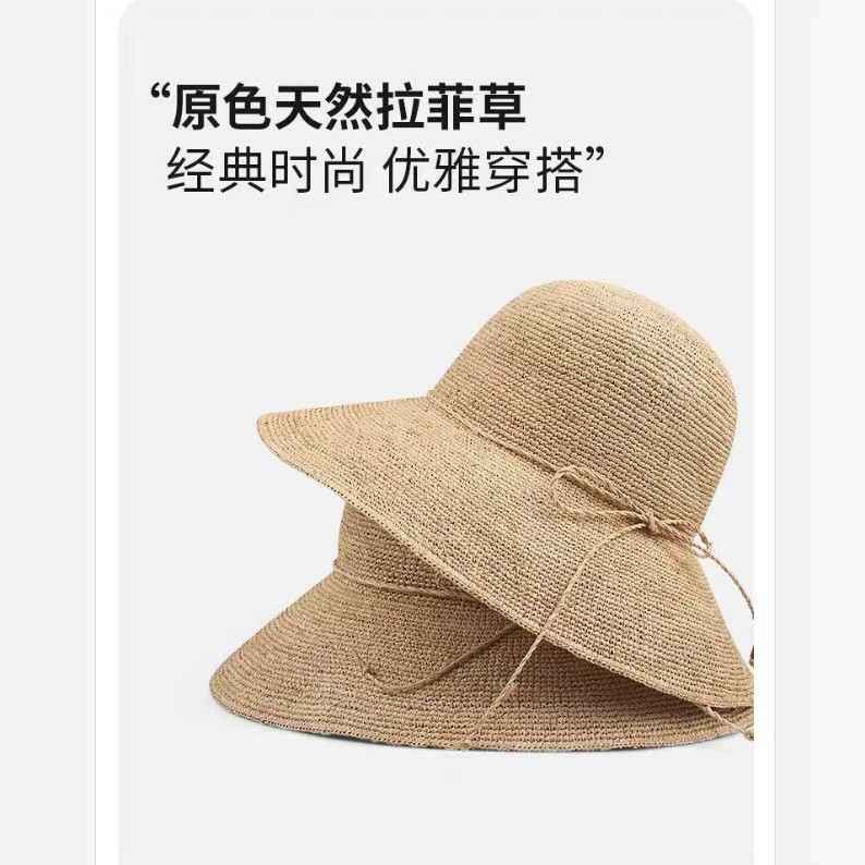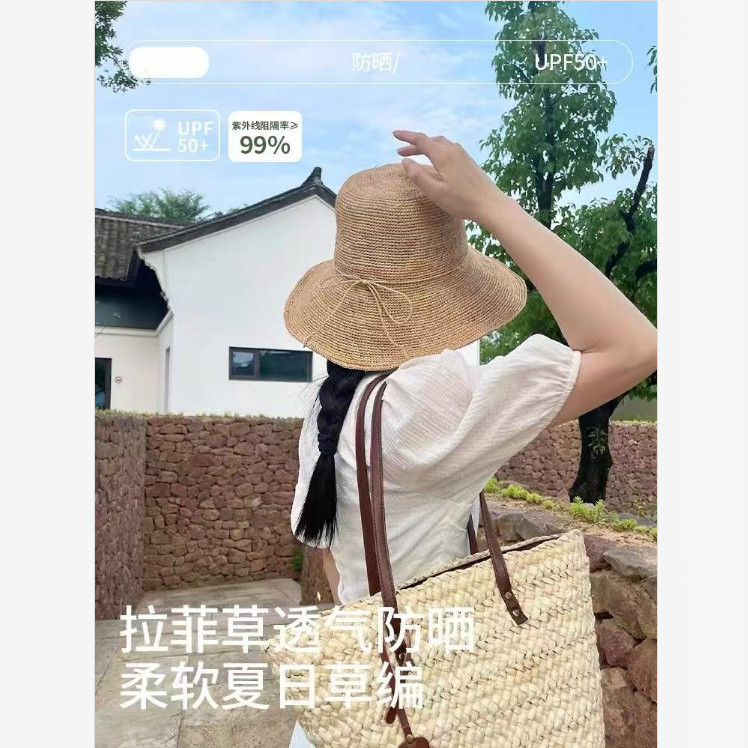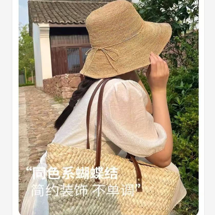 📚 手工草编织拉菲草草帽女夏季海边沙滩遮阳防晒帽可折叠渔夫帽子